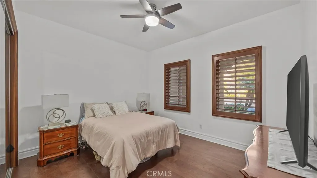 A four-car attached garage (882 sq. ft.) with epoxy floors and sectional steel doors provides ample space for your vehicles and storage needs. Recent upgrades include a fully paid solar system, fresh interior and exterior paint, new pebble-tech pool resurfacing with high-efficiency heater, brand-new hardwood flooring on both levels, updated bathrooms with quartz counters and modern fixtures, and custom wood shutters throughout.
