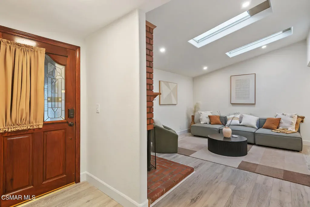 Tastefully remodeled and tucked away on a quiet, private street in desirable West Simi Valley, this 3-bedroom, 2-bath home offers comfort, functionality, and exceptional versatility. The interior has been freshly painted and features brand new laminate flooring throughout most of the home, creating a clean, modern feel. The main bathroom has been fully remodeled with a new shower, vanity, flooring, and lighting, while the secondary bath is nicely appointed with a tiled shower. The kitchen is both stylish and practical, showcasing stainless-steel appliances and elegant marble countertops. An indoor laundry room provides direct access to the attached 2-car garage. Car enthusiasts will appreciate the garage, complete with custom cabinetry, a sink, and insulation all the way to the ceiling, with existing plumbing that offers potential for ADU conversion. The expansive driveway includes a carport and RV parking, complemented by new vinyl gates in the front yard. Low-maintenance landscaping with a drip irrigation system, two large storage sheds, and a charming wood gazebo complete the outdoor space. Additional highlights include newer dual-pane windows, a new tankless water heater, and leased solar with a Tesla battery.