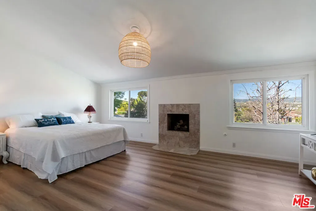 Located on a quiet cul-de-sac in desirable West Simi Valley, this expansive pool home offers space, versatility, and scenic hillside views. Spanning approximately 4,073 sq ft, the residence features 5 bedrooms plus an office and 6 bathrooms, including a convenient main-level bedroom with full bath, ideal for guests, multigenerational living, or a private workspace. Designed for both everyday living and entertaining, the home offers multiple gathering spaces including a formal living room, dining room, and a spacious family room. Fireplaces in the living room, dining room, and primary bedroom add warmth and character throughout. The kitchen is well-appointed with granite countertops, stainless steel appliances, dual ovens, a cooktop, solid maple cabinetry, and a charming breakfast nook.Upstairs, the expansive primary suite serves as a private retreat featuring its own fireplace, walk-in closet, spacious bath with separate tub and shower, and beautiful views from the bedroom. The backyard is designed for true Southern California indoor-outdoor living with a private pool and spa, outdoor fire pit, and a covered outdoor bar and entertaining area complete with ample seating and TV, perfect for hosting gatherings or relaxing evenings. Mature fruit trees including oranges, blood oranges, grapefruit, and kumquat provide a tasty seasonal harvest. Additional highlights include rare RV access with a built-in RV dump, a wet bar, laundry room with chute, attached garage, and a generous lot in one of West Simi Valley’s most established neighborhoods.