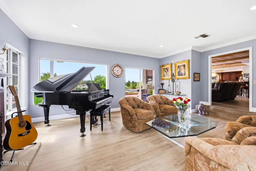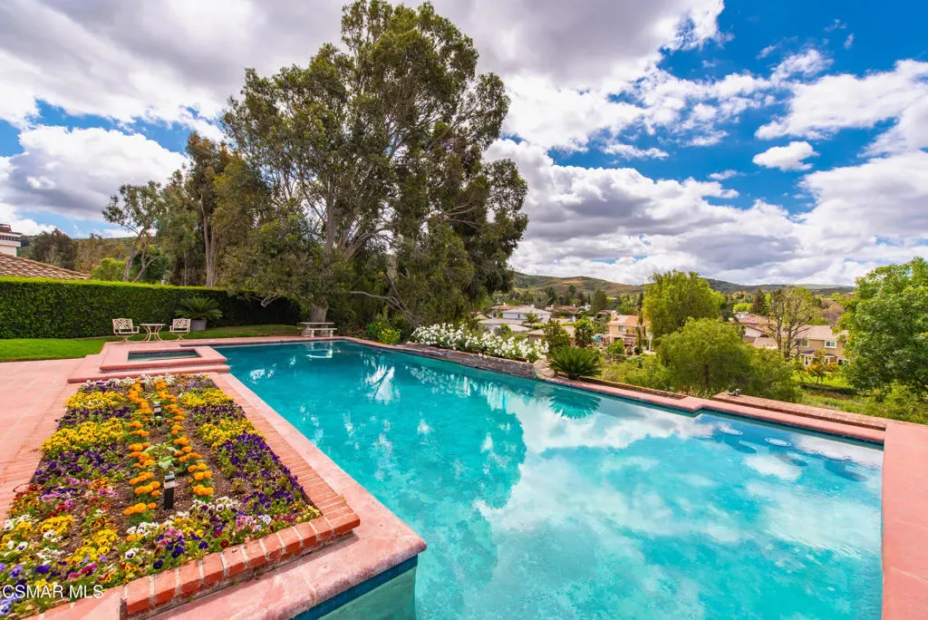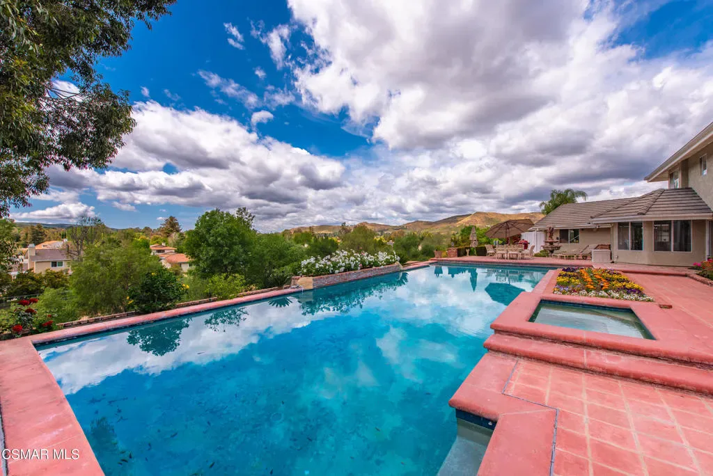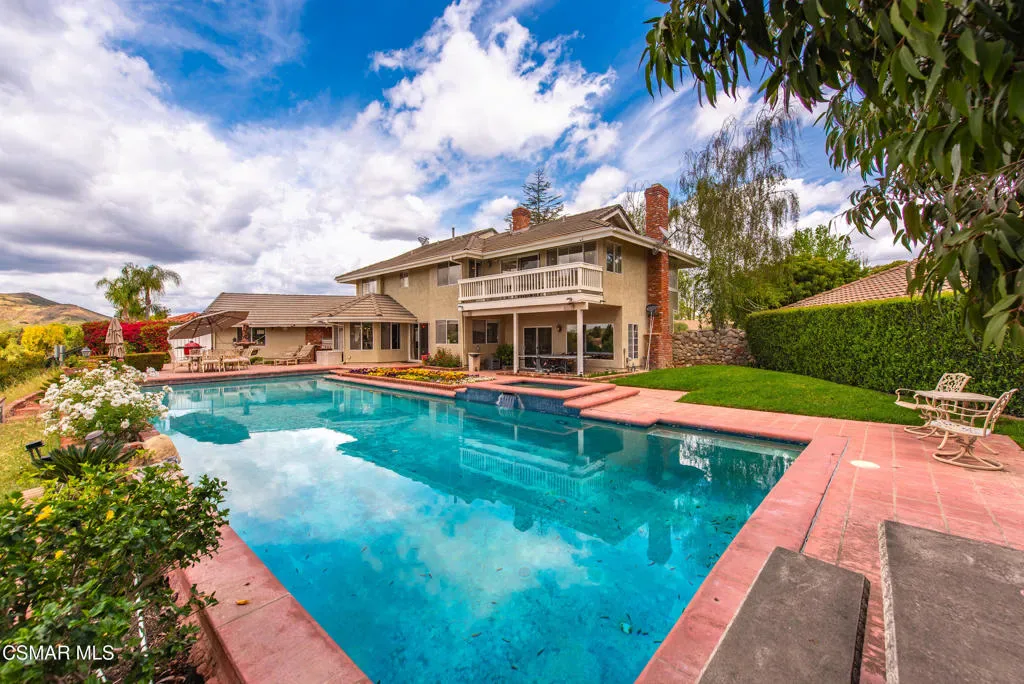 Tucked away on a quiet cul-de-sac, this special Simi Valley home has been truly enjoyed and well cared for, offering beautiful views across the valley all the way to the Ronald Reagan Presidential Library.The floor plan is ideal for a larger household, featuring 5 bedrooms including 4 bedrooms and 3 bathrooms upstairs, along with a downstairs bedroom and separate office. The downstairs bedroom is currently set up with its own private entrance, creating a peaceful retreat for guests, extended family, or anyone who appreciates added privacy.Thoughtful updates include newer Italian porcelain wood flooring downstairs and carpet upstairs. The 3-car garage is equipped with two EV chargers, and the home features solar panels that significantly offset electricity costs for much of the year.The backyard has been one of the most loved features of the home–highlighted by an expansive approximately 60′ x 20′ pool, perfect for relaxing, entertaining, and enjoying warm Simi Valley days. There is plenty of space to take in the beautiful views, stunning sunsets, and create your own outdoor oasis.This is a home that has been truly cared for and enjoyed, and it’s ready for its next owner to make it their own and create lasting memories.