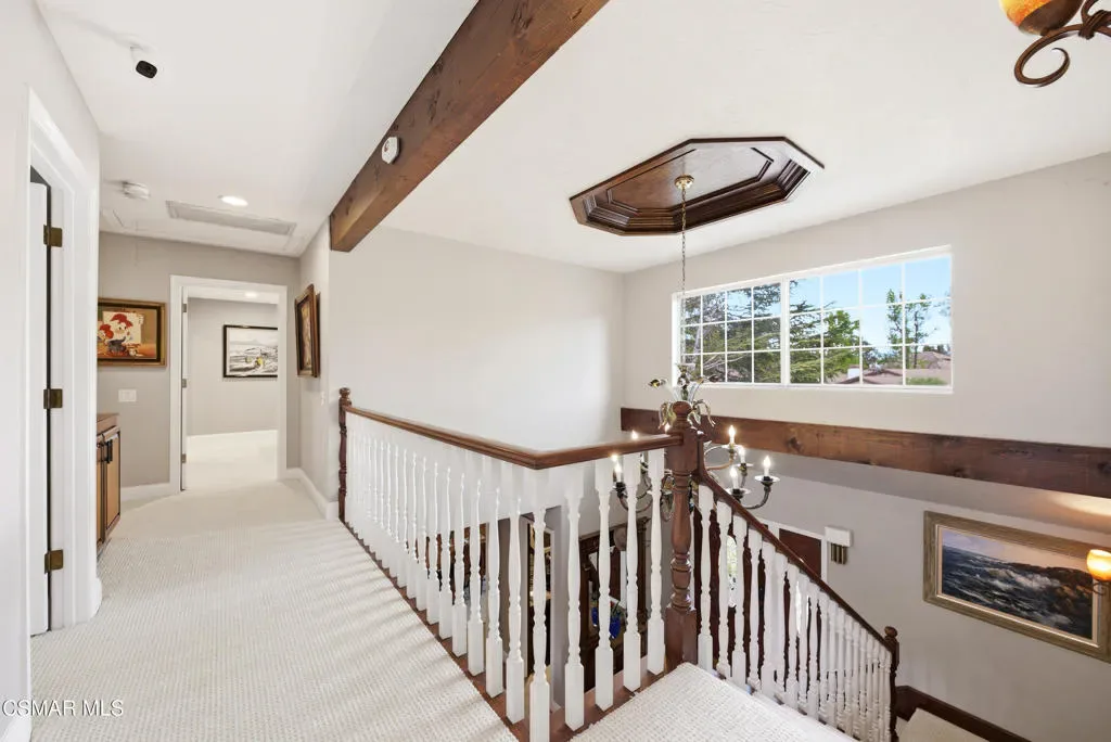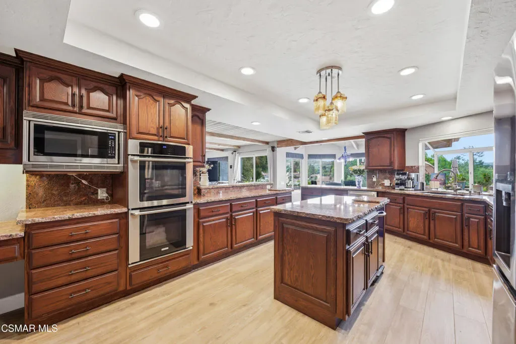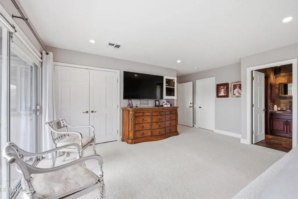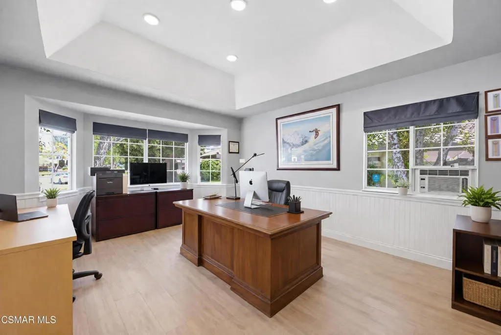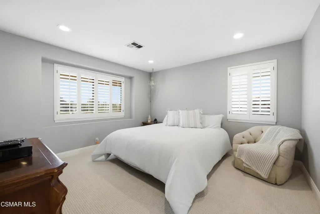 Tucked away on a quiet cul-de-sac, this special Simi Valley home has been truly enjoyed and well cared for, offering beautiful views across the valley all the way to the Ronald Reagan Presidential Library.The floor plan is ideal for a larger household, featuring 5 bedrooms including 4 bedrooms and 3 bathrooms upstairs, along with a downstairs bedroom and separate office. The downstairs bedroom is currently set up with its own private entrance, creating a peaceful retreat for guests, extended family, or anyone who appreciates added privacy.Thoughtful updates include newer Italian porcelain wood flooring downstairs and carpet upstairs. The 3-car garage is equipped with two EV chargers, and the home features solar panels that significantly offset electricity costs for much of the year.The backyard has been one of the most loved features of the home–highlighted by an expansive approximately 60′ x 20′ pool, perfect for relaxing, entertaining, and enjoying warm Simi Valley days. There is plenty of space to take in the beautiful views, stunning sunsets, and create your own outdoor oasis.This is a home that has been truly cared for and enjoyed, and it’s ready for its next owner to make it their own and create lasting memories.