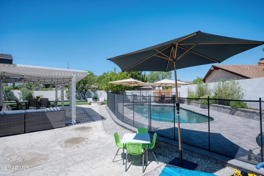 Beautifully remodeled single story home in a prime location, offering exceptional comfort, style, and livability. Vaulted cathedral ceilings create an impressive first impression as you enter the spacious great room, highlighted by a raised hearth, see through stacked stone fireplace and abundant windows that fill the space with natural light. The home features double paned windows, a new patio slider, recessed lighting, plantation shutters, ceiling fans, and tastefully remodeled bathrooms. A new water heater adds peace of mind. The kitchen is both functional and charming, offering: A large pantry, Granite countertops, lots of cabinet space and a custom designer light fixture! With 4 bedrooms and 2 remodeled bathrooms, the layout is spacious and well designed. The primary suite includes custom built in closet with drawers for exceptional storage and organization. Throughout the home, you’ll find thoughtful custom details, including wood like tile flooring, plush carpeting, and a newer roof. Step outside to your private backyard oasis featuring: A pebble tech pool with new child safe fencing, Complete pool re pipe and variable speed pool pump, a large covered patio perfect for outdoor dining and relaxation, Newer pool decking, professional front and rear landscaping with a generous grassy area ideal for entertaining or play! Additional highlights include RV parking with clean out drain and a 2 car attached extended garage with a newer garage door. This home truly has it all–modern upgrades, timeless comfort, and a fantastic location. Don’t miss the chance to make it yours!