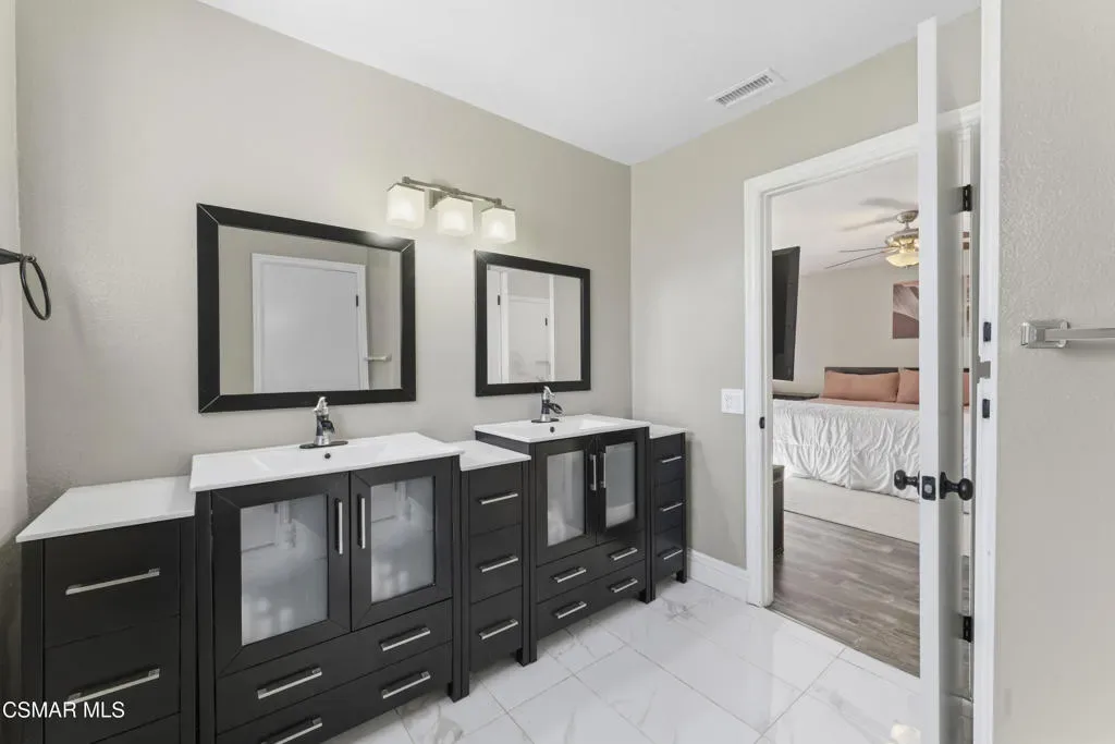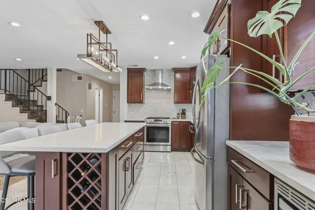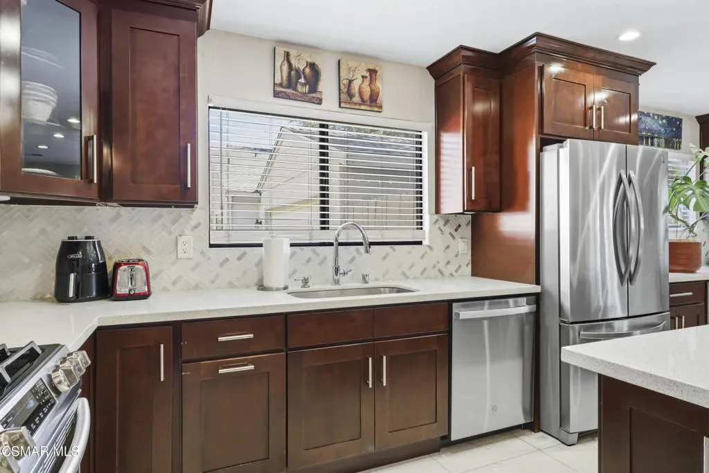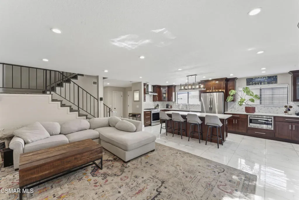 Welcome to the most upgraded home in the desirable Oaktree Community! This beautifully updated 3-bedroom, 2.5-bath residence offers 1,656 sq ft of thoughtfully designed living space with modern upgrades throughout. Enter through the impressive double-door entry into a bright open-concept floor plan featuring a fully remodeled living room and kitchen (2019). The chef’s kitchen is the heart of the home with a massive quartz island, stainless steel appliances, and plenty of space for cooking and entertaining.New tile flooring flows throughout the main living areas, enhancing the home’s clean and contemporary feel. Upstairs, the spacious primary suite features a large walk-in closet and an upgraded bathroom with dual his-and-hers vanities. Enjoy indoor-outdoor living with a private patio and an upstairs balcony.Additional features include an attached 2-car garage with direct access, generous storage, and stylish upgrades throughout. Residents of the Oaktree community enjoy resort-style amenities including a pool and tennis courts, all with a low HOA.Ideally located in the heart of Simi Valley close to shopping, dining, parks, and schools–this is truly one of the most upgraded homes in the community.