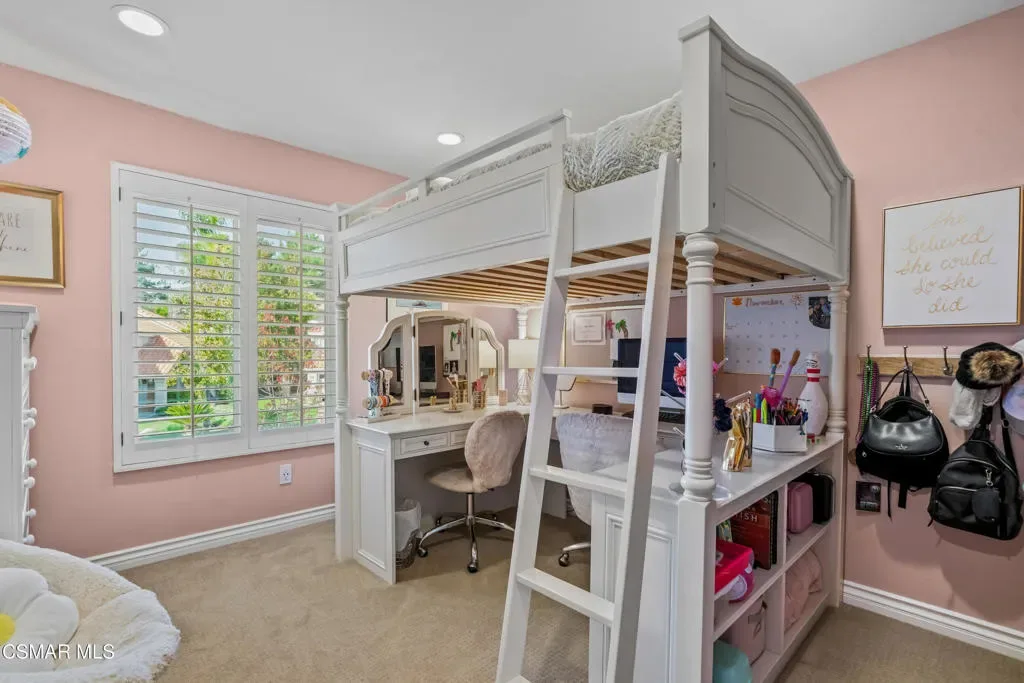 Welcome to this tastefully remodeled home with charm and function. The kitchen dazzles with crisp white custom cabinetry and brushed-gold hardware, sleek quartz countertops, stainless steel appliances including a gas range and built-in microwave, under-cabinet lighting, breakfast bar, and integrated wine storage, perfect for entertaining and everyday living.Natural light floods the living spaces. A cozy stone fireplace and built-ins give the main living space all the comforts of home. The primary suite offers a peaceful retreat with ceiling fan, serene hill views, and direct access to a versatile flex space ideal for a home office, expanded closet, or nursery. The primary en-suite features a frameless glass walk-in shower with dual rainfall and handheld fixtures, built-in bench, and elegant marble accents. Step outside to an expansive private backyard oasis with citrus, avocado, and pomegranate trees, premium vinyl fencing, secure side gate, and a covered gazebo, set directly across from a lush avocado orchard for exceptional privacy.Highlights include: remodeled kitchen and baths, near-new energy-efficient tile roof, vaulted ceilings, recessed lighting, custom fireplace with built-ins, versatile flex space with custom cabinetry, low HOA of approx. $40/month, attached two-car garage with direct access, and indoor laundry. Ideally located near Wood Ranch Open Space and miles of scenic trails, with easy access to shopping, dining, parks, and the Ronald Reagan Presidential Library.Convenient to both the 118 and 101 freeways–each under 10 minutes away. A rare opportunity to own a beautifully updated home in one of Simi Valley’s most desirable neighborhoods.