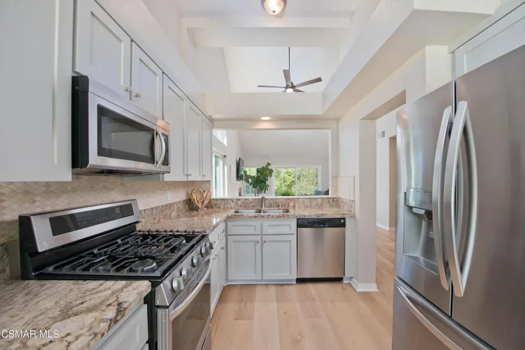 Wood Ranch in Simi Valley presents 65 Iron Ridge Lane, a move-in-ready, beautifully upgraded single-story 3-bedroom, 2-bathroom home located within the gated Greens neighborhood on a desirable corner lot offering added privacy. Wood Ranch is part of a well-known master planned community celebrated for its scenic foothill setting, thoughtfully designed neighborhoods, and convenient location between the 23 and 118 freeways, offering easy access throughout Ventura and Los Angeles counties. Wood Ranch is also recognized as one of Simi Valley’s most established and desirable communities.Situated behind the community gates on a prime corner lot that offers additional privacy, this beautifully maintained home features a bright, inviting interior with an abundance of natural light and a well-designed open floor plan. From the moment you enter, the home feels bright, clean, welcoming, and thoughtfully designed for everyday living. The single-story layout offers ease of living and a natural flow that makes the home feel both comfortable and functional. The single-story design offers comfortable living with a functional, easy-to-maintain layout. The home has been upgraded and is truly turnkey, featuring brand-new luxury vinyl plank flooring throughout (no carpet), fresh neutral tones, and modern finishes that create a warm and welcoming living environment.The seller has taken a proactive approach to preparing the home for sale, completing inspections and obtaining a recent appraisal to provide transparency and confidence for prospective buyers. Recent inspections have been conducted, providing valuable insight into the property’s condition and helping remove uncertainty from the purchasing process. In addition, the property has been recently appraised and is being offered at the appraised value, providing buyers with added confidence in the home’s pricing and overall value.Residents enjoy proximity to Rancho Madera Community Park, a popular gathering place offering open green space, playgrounds, recreation areas, community trails, and seasonal events, including outdoor concerts and family-friendly activities. The prestigious Wood Ranch Golf Club is also located within the community and features a championship golf course recognized for its rolling fairways, beautiful landscape design, and clubhouse amenities, including dining, social gatherings, and recreational activities. Wood Ranch is widely recognized as one of Simi Valley’s premier golf course communities. The home is also located near the Ronald Reagan Presidential Library and Museum, a nationally recognized destination known for its exhibits, events, and panoramic views of the surrounding valley.Homes in the gated Greens neighborhood of Wood Ranch are rarely available due to the limited inventory in this highly desirable community.This is a rare opportunity to purchase a move-in-ready home in the highly sought-after Wood Ranch community with completed inspections, a recent appraisal, and thoughtful upgrades already in place.
