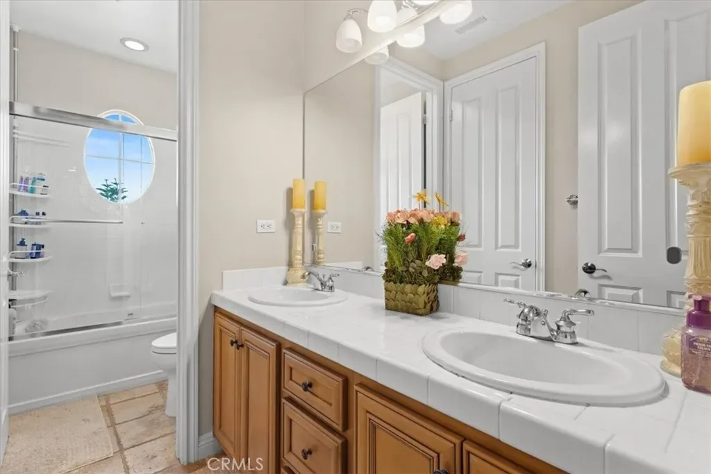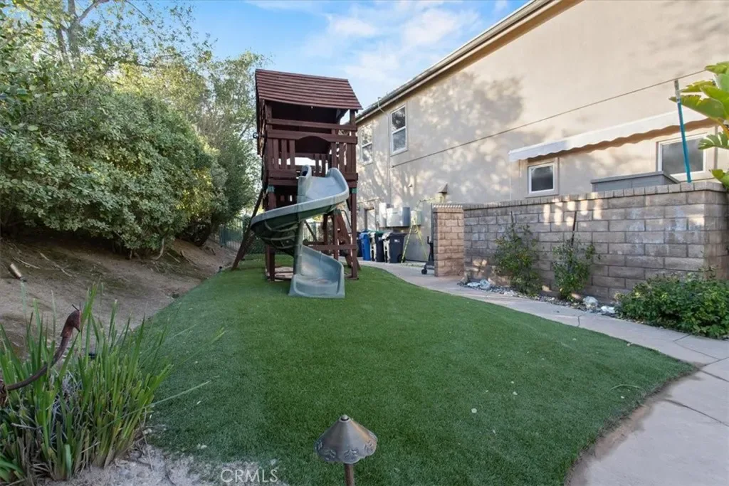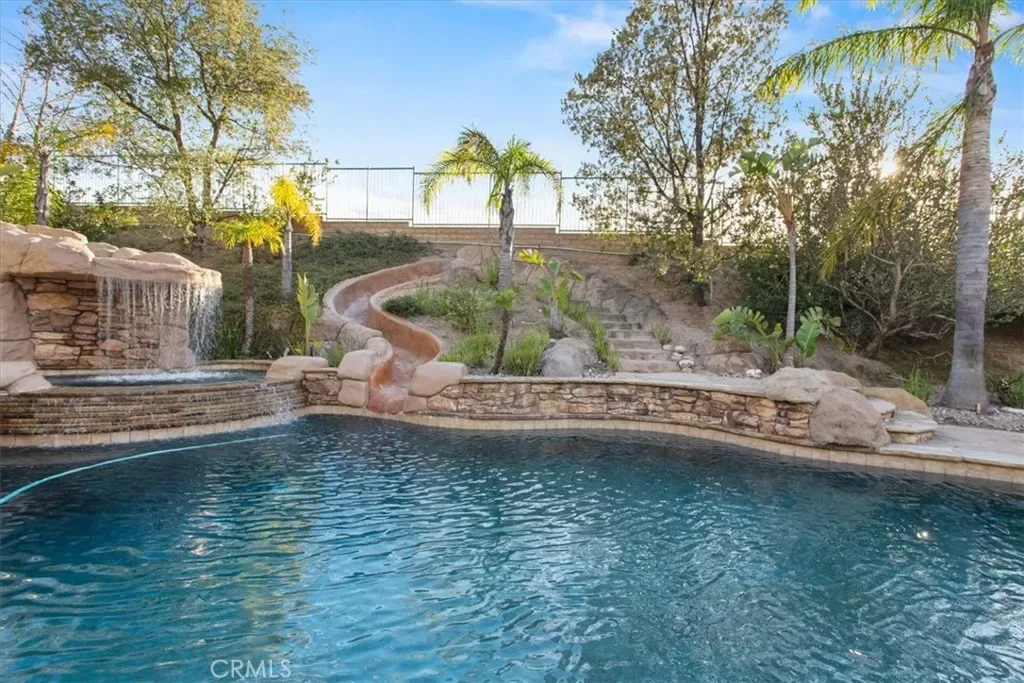 Welcome to Castlewood at Big Sky, one of the area’s most coveted communities—where wide-open spaces, dramatic mountain scenery, and serene natural beauty create a truly special place to call home. Backed by the stunning presence of Whiteface Mountain, this peaceful enclave offers the perfect blend of privacy, luxury, and Southern California indoor-outdoor living. Tucked away at the end of a quiet cul-de-sac and up a long private driveway, located next to open space, this exceptional property showcases breathtaking mountain and valley views, 5 spacious bedrooms, 4.5 baths, and an entertainer’s backyard that rivals a private resort. From the moment you arrive through the gated courtyard entry, you’ll appreciate the thoughtful layout—Inside, an expansive and light-filled floor plan unfolds. The formal living room, anchored by a cozy fireplace, opens to a charming courtyard with a tranquil fountain—setting the tone for relaxed elegance. A warm and inviting family room features its own fireplace, built-in entertainment center, and views of the sparkling pool beyond. Perfect for hosting, the elegant formal dining room flows seamlessly into the sun-drenched gourmet kitchen, complete with granite countertops, abundant cabinetry, a center island with sink, walk-in pantry, and a full suite of stainless steel appliances—truly a chef’s dream. The main level also includes a bedroom with a private bath, a laundry room, and a convenient powder room for guests. Up the grand staircase, the luxurious primary suite awaits—your personal retreat. This expansive haven includes a fireplace, sitting area, oversized walk-in closet with built-ins and pull down attic access with an abundance of storage area, and an additional ~250 sq ft bonus space ideal for an office, nursery, or fitness room. The spa-like primary bath completes the experience. Two additional ensuite bedrooms, a versatile loft, and a bonus room overlooking open space offer endless flexibility for today’s lifestyles. And then… the showstopper backyard. This is Southern California living at its finest: a resort-style pool and spa with rock waterfall grotto, swaying palm trees, BBQ island, lush lawn for play, and even a putting green—all beautifully set against a natural backdrop. Solar? Yes—owned with back-up batteries. There is also ample parking with a 2 car garage and a one-car garage with an attached room ideal for a hobby room or storage. Residents of Big Sky enjoy miles of walking and hiking trails.