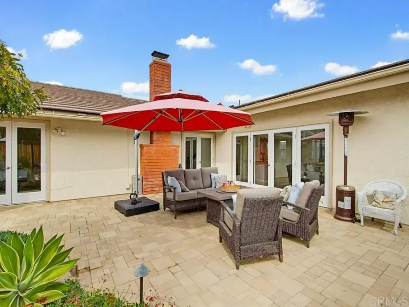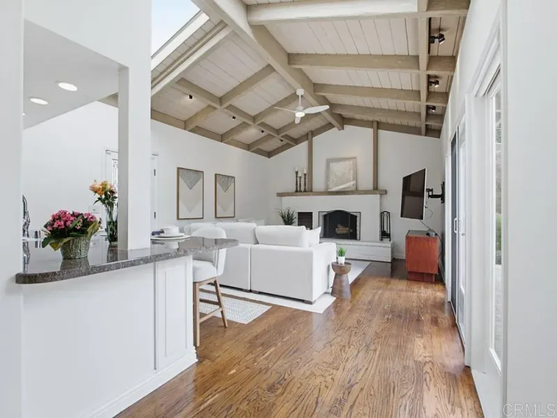 Welcome to coastal elegance at this exceptional Santa Fe Hills residence, set within the sought-after community of Solana Beach. Situated on an expansive and thoughtfully curated landscaped 10,200 sq ft lot, this beautifully designed 3-bedroom, 2-bath residence offers ~2,000 sq ft of refined yet relaxed living.The home unfolds with intention—an inviting living room with fireplace and garden views flows effortlessly into both the dining space and an exceptional, oversized family room designed for gathering. With soaring vaulted wood- beamed ceilings, a grand brick fireplace, and French doors that open to the patio, this space captures the essence of indoor-outdoor coastal living. At the heart of it all, the kitchen’s pull-up bar seating connects seamlessly to the family room—creating the ultimate setting for entertaining, casual dining, and unforgettable evenings with friends and family.The primary suite is a private retreat, complete with a soaking tub, walk-in shower, and brand new dual vanity. Thoughtful updates, including new windows in the secondary bedrooms, new custom paint and carpet fill the home with natural light. Two private patios and an outdoor shower invite you to fully embrace the coastal lifestyle, while a spacious 3-car garage adds everyday convenience. Two private patios, an outdoor shower, and a spacious 3-car garage complete the package. This home is located in two award-winning school districts, the Solana Beach Elementary School District, home to Solana Vista and Skyline schools, and the San Dieguito Union High School District. Just minutes from the beach and the vibrant Cedros Design District, this home offers the very best of North County coastal living.