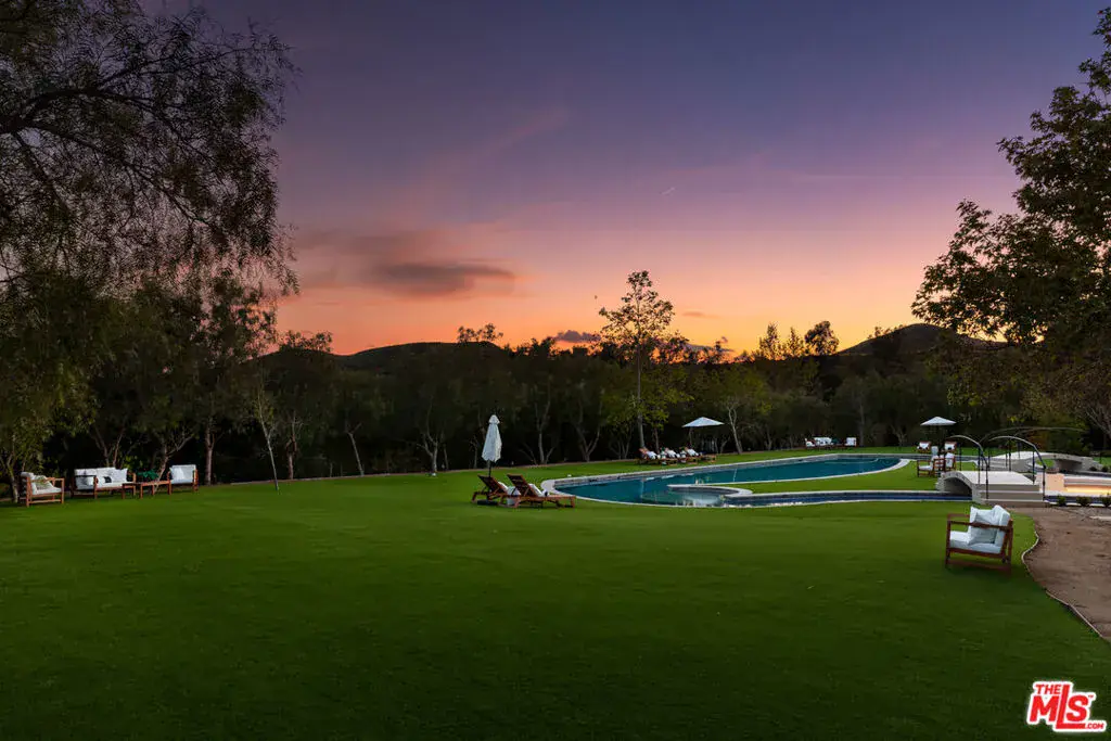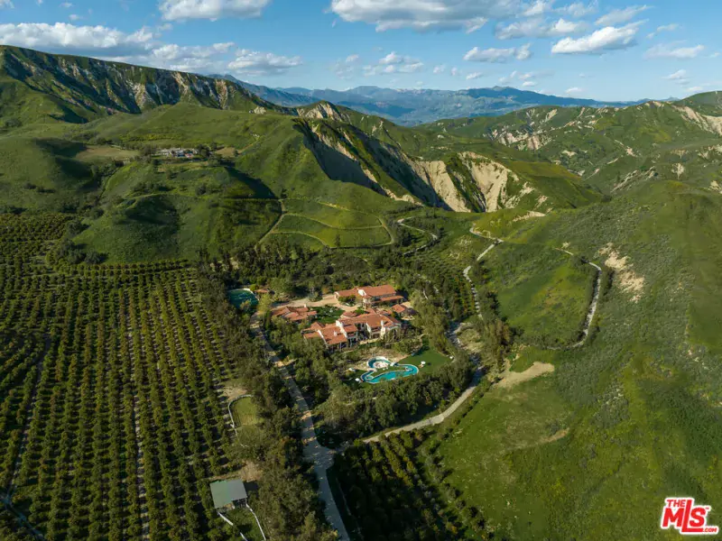 Welcome to El Palacio Del Solano, an exquisite oasis nestled within the prestigious Solano Verde Ranches. This extremely private enclave of 39 palatial estates is centrally located from Los Angeles, Malibu, & Santa Barbara. Located just 25 minutes north of Westlake Village and Thousand Oaks, and a mere 45 minutes from the pristine shores of Malibu, this secluded sanctuary offers convenience. Each of these generational estates sits on dozens of acres encompassing the most pristine natural landscapes known to Southern California. Beyond the handcrafted gates, ensconced amidst verdant fruit orchards and bordered by a meticulously manicured tree-lined driveway, awaits a truly unparalleled residence, the holy grail of Somis. Spanning 22 acres of secluded splendor, this Spanish palatial estate exemplifies opulence at every turn. Boasting approximately 20,000 square feet of meticulously designed living space, the estate epitomizes grandeur & opulence. The centerpiece is the magnificent 14,460 square foot main residence, complemented by a fully appointed 2,300 square foot guest house and an expansive 3,100 square foot hospitality and recreational facility. Step inside and be greeted by perfectly detailed Spanish tiles along the flooring and an all encompassing floor to ceiling window. From the state-of-the-art media room to the tranquil library & private office, each space exudes sophistication. Culinary delights await in the gourmet kitchen ideal for large gatherings, while the bar and wine cellar beckon for evenings of refined entertainment. Retreat to the sumptuous master suite, where a private primary living room is joined with a double-sided fireplace. The dual primary bathrooms feature a spacious dressing area, sauna, double-sided glass enclosed shower, & direct access to personal gym & office. Other notable interiors include a private massage room, arcade room, and grand formal dining room. Ascend to the second floor, where hospitality reigns supreme. Three luxurious bedroom suites, each boasting private balconies with sweeping vistas, offer unparalleled comfort. A 2nd story loft space with a bar can be found overlooking the 1st floor family room with the iconic arched window capturing the picturesque mountain views. Step into the backyard where paradise awaits. A massive grass field is accompanied by multiple lounging areas and a one-of-a-kind lazy pool with a center island fire pit. The backyard is adorned by a plethora of fruit trees including lemon, avocado, pomegranate, fig, & tangerine. Walking paths leading up to your own private mountain located to the East side of the estate offer the most scenic jaw dropping mountain views. French doors off the glass enclosed breakfast room open up to a private al fresco dining and living area accompanied by an outdoor kitchen. Multiple seating & entertainment areas allow for hosting of large dinner parties or smaller intimate events. Enjoy your own private sports court with its own shaded cabana. Start your mornings with a round of tennis or basketball. The guest house is situated with a two-car garage, two beds, two baths, fully equipped kitchen, living room, & breakfast nook. This private luxurious retreat is equipped with all living essentials. The recreational & hospitality facility are ideal for hosting the most upscale events. Tucked away behind the facility are two fully equipped restrooms. A spacious four-car garage is attached to the facility equipped with volume ceilings ideal for parking event vans, trucks, and small to mid-size buses. The possibilities are endless with regard to this facility. An estimated range of fifteen to twenty cars could comfortably be parked in the driveway and motor court spaces. Whether a notable family desires an ultra-private compound or a high-status celebrity seeks a serene oasis, El Palacio Del Solano offers a lifestyle unlike any other for the most discerning buyer.