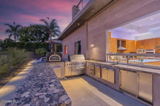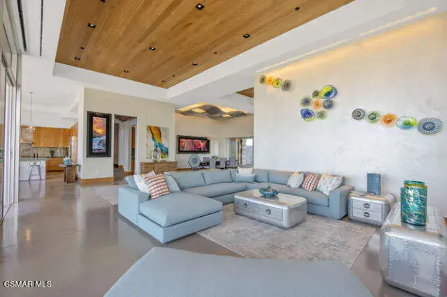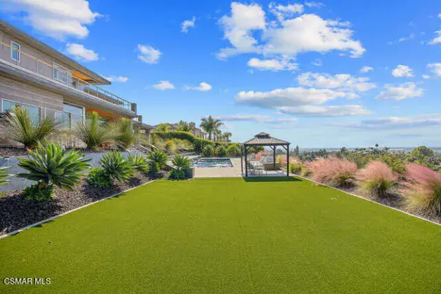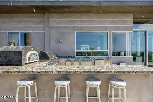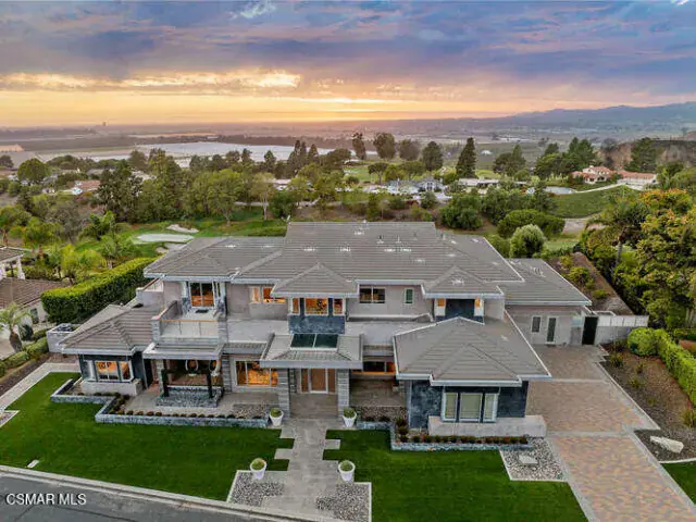 Architectural Luxury with Ocean-Island, Golf Course & Sunset Views! Privately gated community and perfectly positioned above the 17th fairway of The Saticoy Club, this extraordinary Somis estate captures the very best of California architecture, design, and lifestyle. With panoramic views of the Pacific Ocean, Channel Islands, and the club’s lush greens, 4941 Northridge Drive is both a sanctuary and a statement of artistry.Inspired by Frank Lloyd Wright’s philosophy of organic design, this nearly 6,800-square-foot residence blends natural materials, clean lines, and walls of glass that dissolve the boundary between indoors and out. Inside, polished concrete floors, rich wood tones, and designer lighting create a warm yet sophisticated aesthetic. The main home features six ensuite bedrooms, while a separate one-bedroom guest house provides a fully self-contained retreat for family, guests, or creative pursuits. The moment you enter, art and architecture take center stage. A 10-foot-tall glass sculpture anchors the entry, transforming everyday living into a gallery-quality experience. A custom glass staircase becomes a floating work of art, capturing light and view lines throughout the main level. The heart of the home is the expansive great room, where floor-to-ceiling glass walls and sliding doors frame dramatic island, mountain and golf course vistas, blurring the line between inside and out. Adjacent to the main living area, the chef’s kitchen impresses with dual illuminated glass islands, professional-grade appliances, and warm natural finishes that make entertaining effortless. Downstairs, a state-of-the-art theater room offers cinematic immersion with a solid soundproof walnut door, blackout shades, and studio-quality acoustics, the perfect retreat for movie nights or game day. For the baseball enthusiast, the home carries a touch of Americana. Authentic bricks from Chicago’s historic Wrigley Field are artfully integrated into the design, forming the ceiling of the bar area and the patio in front of the home. It’s a masterful blend of art, architecture, and personal heritage woven into one exceptional estate.Upstairs, the primary suite offers a spa-like escape with a freestanding tub, steam shower, radiant heated floors, and a private balcony capturing endless sunsets. Upstairs, three ensuite secondary bedrooms are accompanied by a meditation room, a second family room/flex space, a home office area, and an additional laundry zone for ease and convenience. Additionally, downstairs, two ensuite bedrooms currently serve as a music room and gym, while the convenient pool-access mudroom includes a dog-washing shower, lockers for guests, and a dedicated laundry area.Outdoors, the experience is pure California featuring a resort-like setting ideal for entertaining, a full Viking kitchen and pizza oven, saltwater pool and spa, two fireplaces, and lush, drought-tolerant landscaping with raised garden beds. The four-car garage with custom glass doors includes a car lift for additional vehicle or storage capacity, perfectly suited for the collector or enthusiast. Modern conveniences such as a Siemens whole-home generator, soft water system, and fully owned solar panels ensure efficiency, comfort, and peace of mind year-round.Overlooking The Saticoy Club, Ventura County’s premier private country club and host to U.S.G.A. Championship Qualifiers and SCGA Amateur Championships–this home offers unmatched privacy, prestige, and beauty in one of the area’s most desirable settings.Just minutes from Santa Rosa Valley and an easy drive to Ventura Harbor, Hollywood Beach, Ojai, Santa Barbara, and Westlake Village, 4941 Northridge Drive redefines California luxury living -where architecture, artistry, and lifestyle meet in perfect harmony. All that’s missing is you!