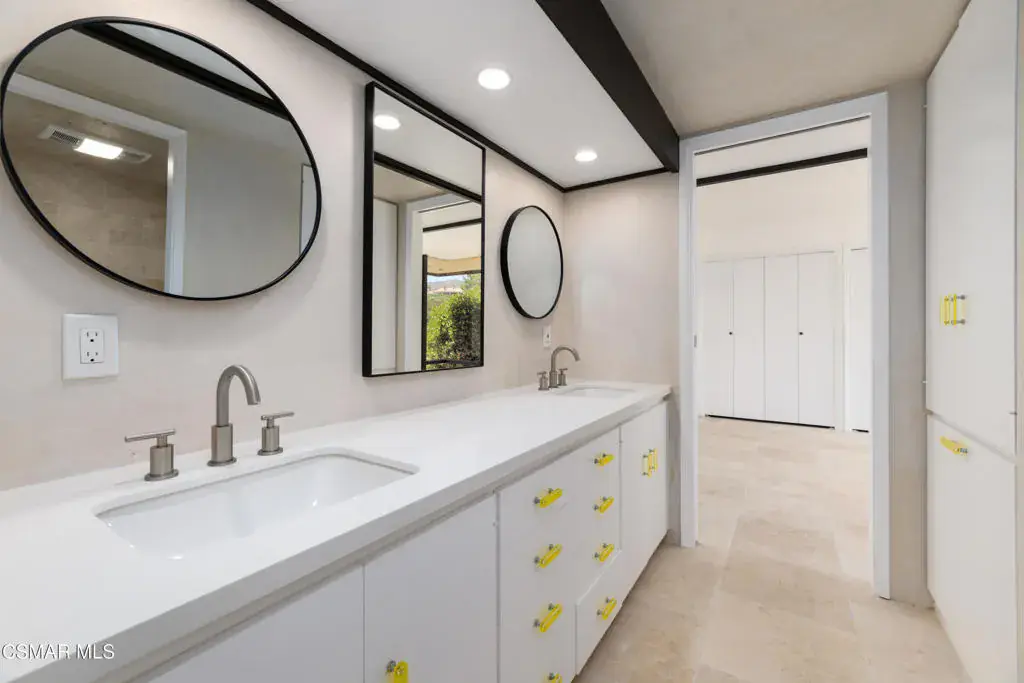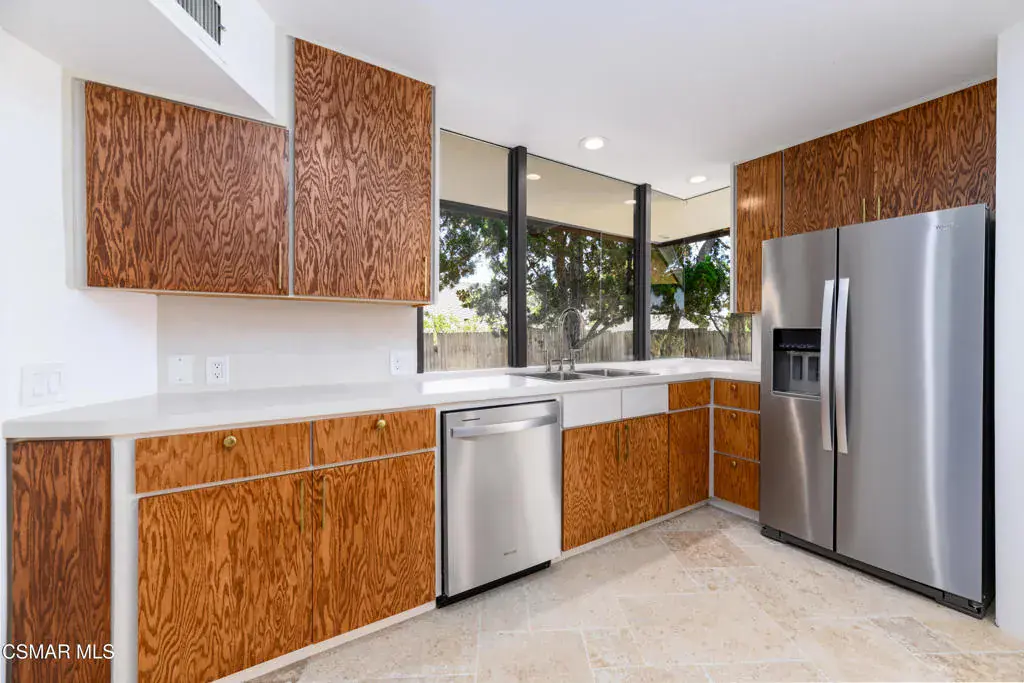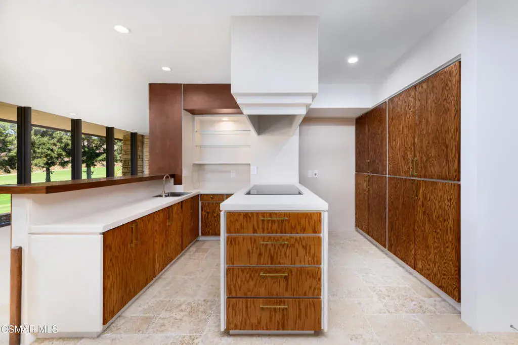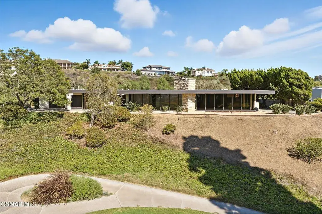 Enjoy expansive views from every room of this beautifully restored custom architectural gem on one of California’s best private golf courses. Designed by Richard Martinez, a distinguished architect known to have been a protege of Frank Lloyd Wright, this stunning home has impeccable examples of inspired design at every turn. Located behind the private gate of Fairway Hills, this cul-de-sac single story boasts stunning views of the course, peeks of the Channel Islands, phenomenal sunsets, + sparkling city lights. Walls of glass in every room create the feel of indoor/outdoor living & will delight design enthusiasts with nods to great architects. Incredible details throughout + updated with many art worthy finishes, authentic Astra Sputnik chandelier, & exquisite antique French limestone flooring. Double doors greet guests w/the orignal Seguso Murano hand blown entry lantern, but the spectacular views are the immediate focus. Restored original wood detailing, large original stone fireplace, & built-ins in every room add to the sleek elements. Large formal dining area is perfect for hosting guests w/built-in expandable sideboard, + art niches. Open kitchen and wet bar have been updated with modern conveniences, concrete overlay counters, & limewashed walls while respecting the unique original floor plan. Primary ensuite bedroom has walk-in closet, built-in storage, rock wall accent, patio access, & views galore. Remodeled primary bath has custom cut tiling, mid century designer side tables converted to beautiful unique vanities, walk-in shower, & more views. Spacious secondary bedrooms have ample built-in storage, enjoy course views, & have direct access to patio. Secondary bathroom shared by bedrooms has dual sinks, walk-in shower, & extra storage. Formal sunken living area is a cozy place for entertaining w/ built-in sofas, space for grand piano or games, & wood detailing. Formal powder room has incredible mid-century inspired lighting, + timeless stone sink / counter. Patios allow for gardening, entertaining, & show stopping views. w/ gorgous mature olive trees and easy maintenance lanscaping. Oversized 3 car garage w/workshop is perfect for hobbies + golf cart. The Saticoy Club, founded in 1921, is Ventura County’s oldest private golf club offering award winning cuisine, pool, fitness center, & fun social events. The course has been ranked in the top 35 in California, and has hosted televised tournaments. Located in Somis on the edge of Camarillo & Ventura, property is in the highly sought after Mesa Union School District, close to quality shopping, fine dining, beach fun, & easy commuter access to Malibu, Santa Barbara, Ojai, & LA. Search Southern California for Richard Martinez designs to understand the true value of this hisotrical estate, This property must be seen in person to understand its amazing charm. Own a piece of county history!