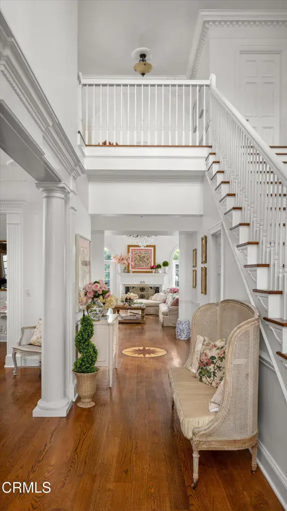 In the heart of Solano Verde Ranches, the multi-functional Grace Rose Estate offers an enchanting retreat set on approximately +/-20 acres of privacy and beauty. Beyond double gates, a brick manor with stately columns and manicured grounds evokes the grace of a Southern estate, where every arrival feels like a timeless occasion. For equestrian enthusiasts, the ranch features a showcase barn with 27 cedar stalls, blending function and tradition within its stately design. For garden enthusiasts, the estate offers endless opportunities for creativity and diversified orchard growth. Although currently celebrated for its approximately +/-400 varieties of roses, adding natural beauty and fragrance to the grounds, the approximately 10 acres of flat usable land provides ample space for your imagination to be fulfilled. There are also 10 sloped acres with roads carved out for orchards, further expanding the possibilities for cultivation and design. Entering the main residence, a sweeping staircase welcomes you into a grand foyer, with crown molding, rich finishes, and chandeliers that create a sense of elegance and celebration. Formal living and dining rooms provide distinguished spaces for entertaining, while a soaring great room with arched windows frames views of the expansive landscape. The kitchen serves as the warm and lively heart of the home, opening through French doors to patios and gardens–perfect for sunlit breakfasts, summer gatherings, or twilight dinners under the stars. Across the property, generous lawns and wide-open acreage offer room for creativity, recreation, and memorable moments with family and friends. In addition to the main residence, a detached guest house provides comfort and independence for visitors, while an additional separate home, currently occupied by onsite staff who provide estate management services, expands the possibilities for work, play, or multi-generational living.Though renowned for its equestrian and garden features, The Grace Rose Estate is far more than a specialty property–it is a rare sanctuary of space, beauty, and tradition, offering a lifestyle as versatile as it is inspiring.
