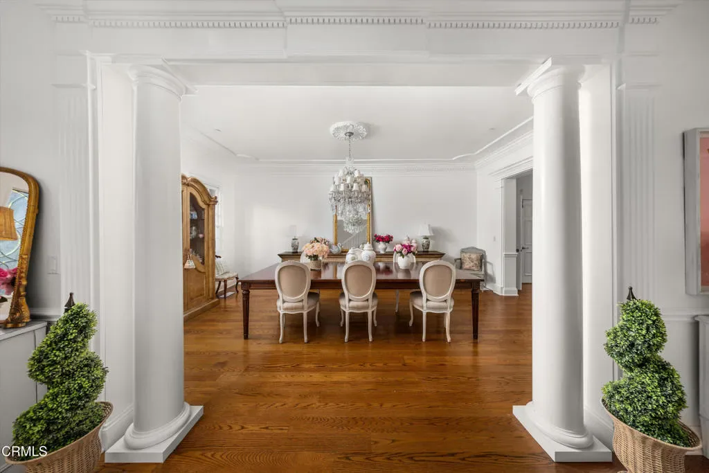 In the heart of serene tree-lined Solano Verde Ranches, this estate unfolds as a distinguished equestrian sanctuary set across approximately +/-20 acres of privacy, beauty, and opportunity. Beyond double gates, a stately brick manor with classic columns and manicured grounds evokes the elegance of a Southern estate, where every arrival feels both grand and welcoming. Purposefully designed for the equestrian lifestyle, the property is anchored by a showcase barn featuring 27 cedar stalls, blending craftsmanship with functionality in a refined setting. Surrounding the barn, more than 5 acres of flat, usable land provide exceptional potential for established pastures, paddocks, riding arenas, or training facilities. With its thoughtful layout and scale, the estate is well suited for a fully realized, income producing horse operation, whether for boarding, training, or private equestrian pursuits. Beyond its equestrian infrastructure, the land offers remarkable versatility. Approximately 10 additional sloped acres, complete with carved roads, present opportunities for riding trails, orchards, or expanded agricultural use, creating a property that is both dynamic and deeply connected to the landscape. Inside the main residence, a sweeping staircase introduces a grand foyer adorned with crown molding, rich finishes, and statement chandeliers that set a tone of timeless elegance. Formal living and dining rooms offer refined spaces for entertaining, while a soaring great room with arched windows captures sweeping views of the surrounding acreage. The kitchen serves as the warm and inviting heart of the home, opening through French doors to patios and gardens that naturally extend daily living outdoors. Beyond the main residence, the estate is thoughtfully equipped for both comfort and function. A detached 2 bedroom, 2 bathroom guest house offers privacy for visitors, while an additional separate 2 bedroom, 1 bathroom residence, currently occupied by onsite staff providing estate management, supports seamless day to day operations. Currently residing in the manager’s residence is a highly skilled tradesman with extensive experience in property maintenance and animal husbandry, providing valuable support in maintaining the estate’s grounds and equestrian operations. For collectors and enthusiasts, the property also includes garage space for up to 8 vehicles. At its core, this is more than a beautiful home.