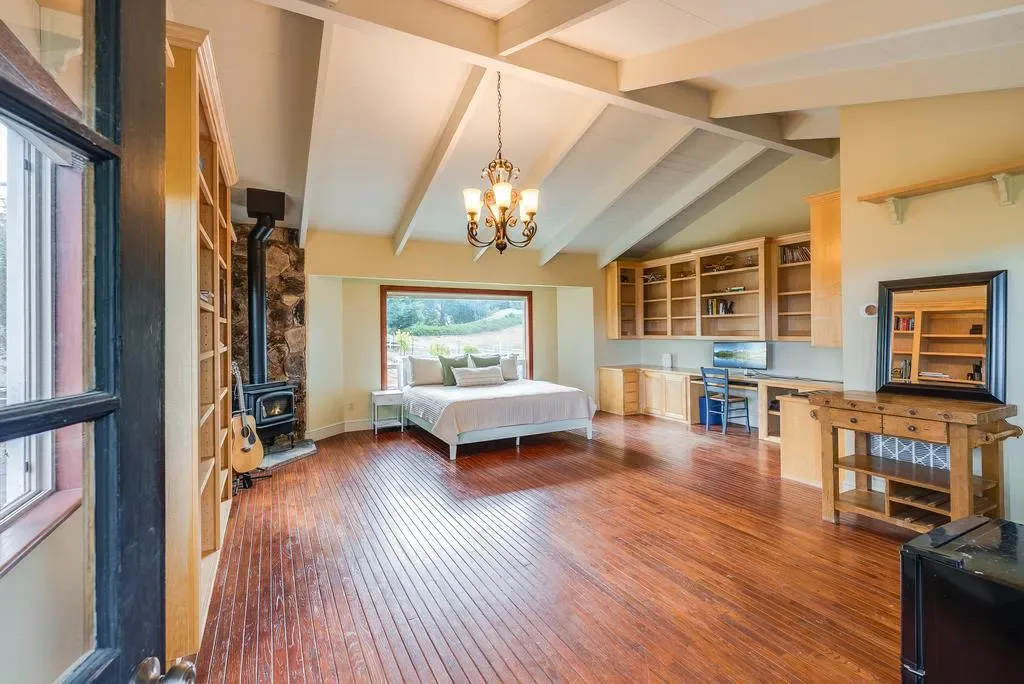 You know that ridgetop home where you can see everything? The one with unparalleled views that make you feel like youre on top of the world? You wake up and have coffee on the balcony overlooking the entire valley. The kids are already racing to get eggs from the chicken coop while your house guests are waking up in their own private unit. Everyones got space, but nobody feels disconnected. Your family just spreads out naturally, someones relaxing in the great room, the kids disappear to spend hours in the game room, and youve got the perfect spot waiting to become whatever sports court your family wants. Basketball, pickleball, tennis, whatever gets the family together. Nights are spent telling stories and laughing while you roast s’mores over the firepit. When your extended family visits, they genuinely dont want to leave. Theres room for everyone to spread out comfortably. A short drive puts you close to Soquel restaurants, but with sunset views like this, youll never want to leave. This is the kind of place where you stop looking at real estate apps because you already found what everyone else is searching for.