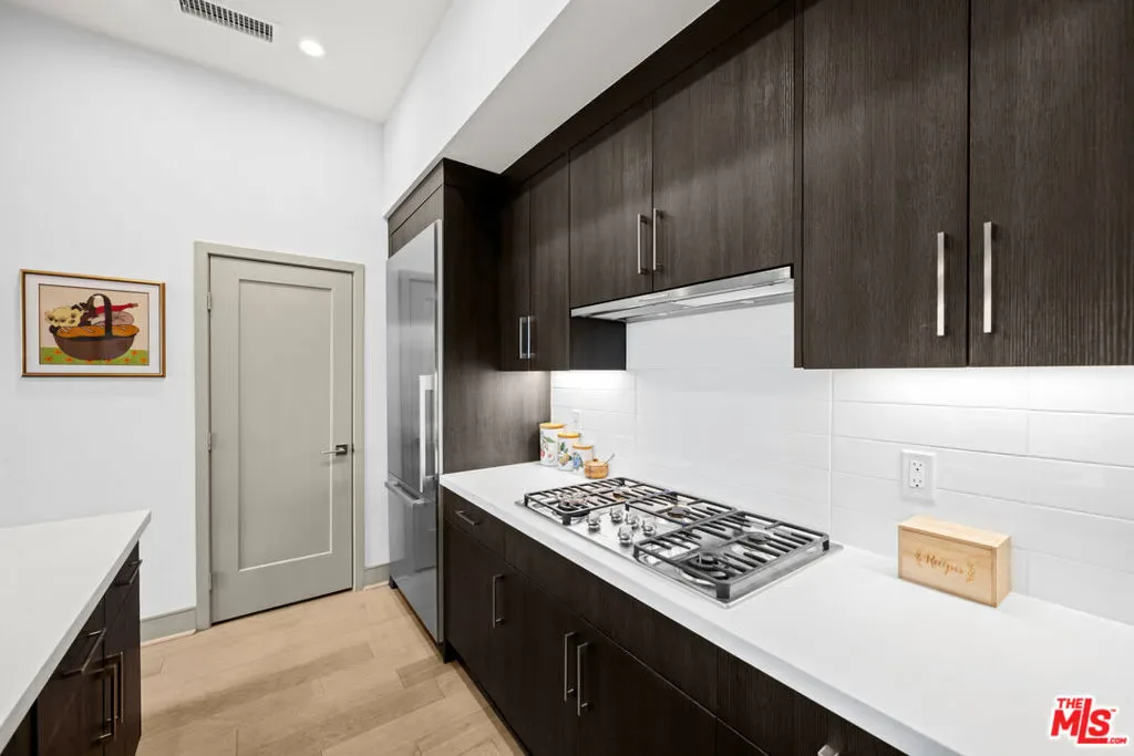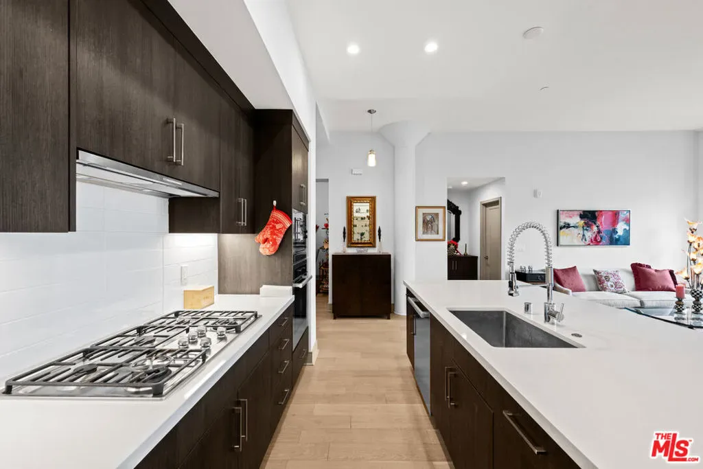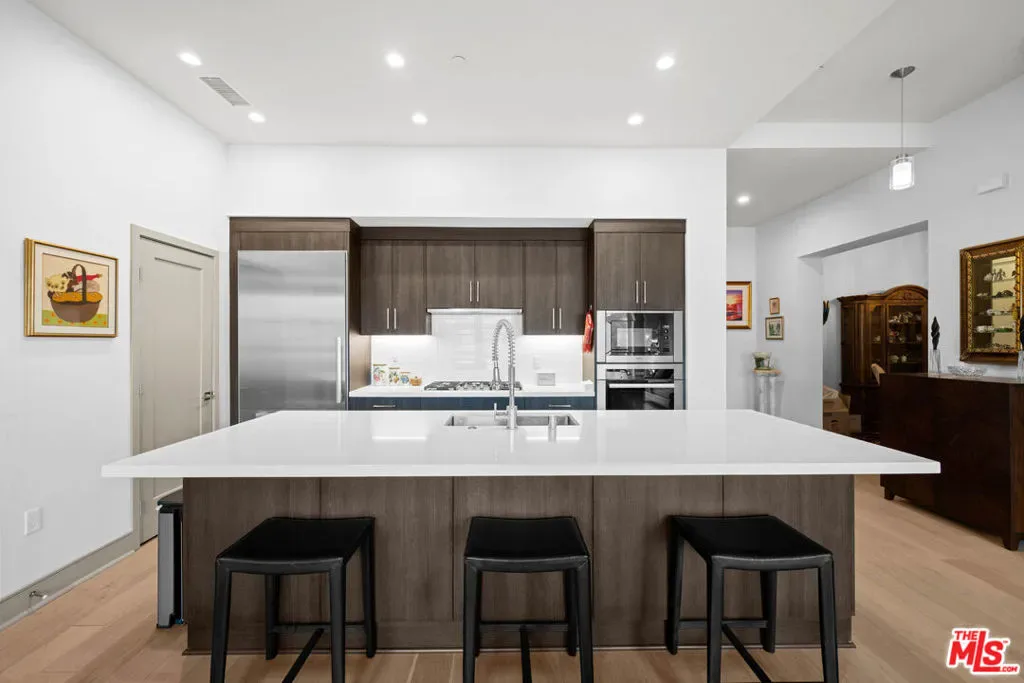 Vibrant in-town living meets timeless sophistication in this stunning single-level condominium located at Eight Twenty Mission, an exclusive enclave nestled in the heart of South Pasadena. Blending modern elegance with Spanish Colonial architecture, this two-bedroom, two-and-a-half-bath, generously sized condo offers an exceptional opportunity for discerning buyers seeking both luxury and convenience. Facing a beautifully maintained, tree-filled greenspace, the residence welcomes you with a seamless open-concept layout, elevated ceilings in primary rooms, designer-selected flooring, and abundant natural light. The gourmet kitchen is a chef’s dream, featuring quartz countertops, sleek European frameless espresso cabinetry, and a premium suite of Miele appliances, including a gas cooktop, direct-select oven, hood, dishwasher, and microwave, along with full pantry and an expansive seated bar for casual dining. Flex space is currently configured as a formal dining room but would also make an elegant home office or den. Primary bedroom suite includes a generous walk-in closet as well as an ensuite bath with walk-in shower, double-sink vanity and water closet. Enjoy the added convenience of laundry room with full-size side-by-side washer/dryer, tankless water heater, two dedicated parking bays (one with an electric charging station), and a private, secure storage room located on the same level as the condo. Perfectly positioned within Eight Twenty Mission, this home offers effortless access to South Pasadena’s best amenities. Just moments away, you’ll find the Metro A Line, a bustling weekly farmers market, scenic parks, charming boutiques, and top-rated local restaurants. The Eight Twenty Mission community itself is defined by thoughtful design and beautiful landscaping, a living tribute to the city’s rich natural heritage. Designed for ease and comfort, this residence offers single-level living with no stairs required to access the home. With its unbeatable location, refined interiors, and a perfect balance of in-town vibes and serene retreat, this is the pinnacle of South Pasadena contemporary living.