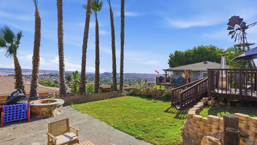 Panoramic views from nearly every angle. Positioned on Dictionary Hill, this two-story home captures sweeping views of the Sweetwater Reservoir, surrounding mountains, and open sky—sunrises in the morning, sunsets in the evening, all visible from the main living areas, bedrooms, and outdoor spaces. The home offers an open, functional layout with natural light throughout. Large windows frame the views, while wraparound decking in both the front and back extends the living space outdoors. The spacious kitchen features granite countertops and stainless steel appliances. Laminate flooring runs throughout the main living areas, creating a clean and cohesive feel. While all bedrooms are large- the primary bedroom is a treat with stunning views and a private deck. The lower level is a highly versatile space that can function as a family room, den, or potential additional bedroom, complete with built-in cabinetry, counter space with direct access to yard. On the side of the garage, a substantial bonus storage area offers even more flexibility. Whether used as a workshop, creative space, or expanded storage, it adds valuable functionality beyond the main home. The backyard provides a combination of usable yard space and decking, creating room to entertain, play, or simply take in the views. Recent updates include roof replacement (2021), solar system installation (2021), upgraded electrical panel (2021), ductless mini split AC systems throughout (2023), and recently updated appliances including dishwasher, refrigerator, microwave, and oven. No HOA. No Mello-Roos.