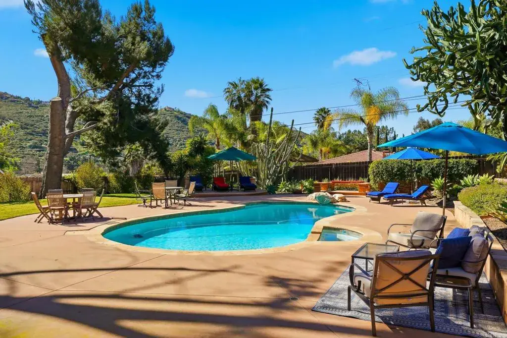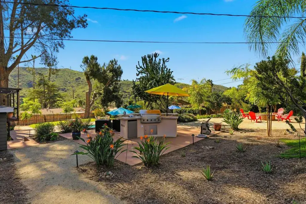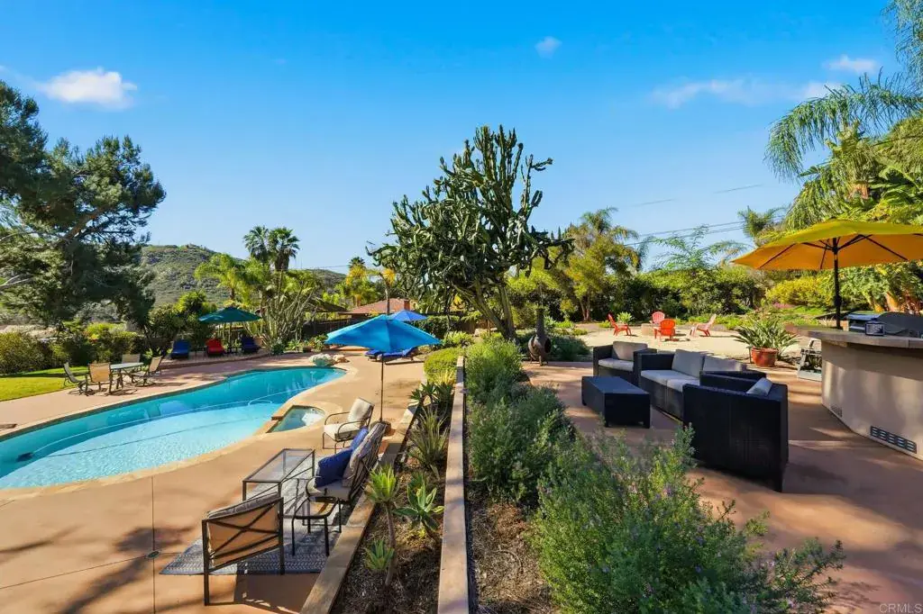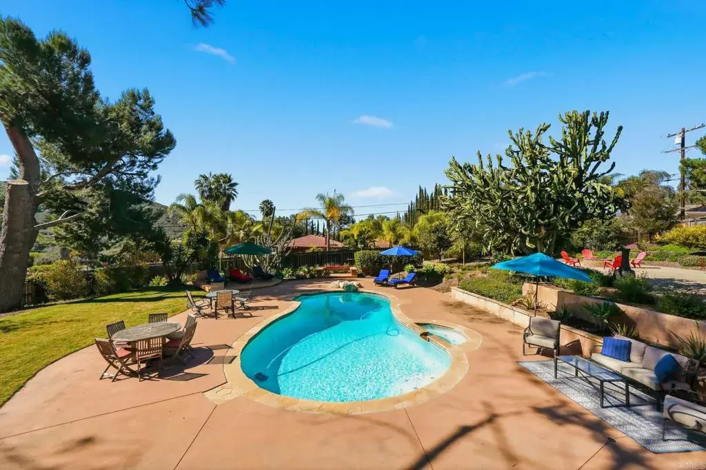 Welcome to 3212 Star Acres Drive, a 4 Bedroom 2.5 bathroom home with a living space of about 1,697 square feet. This 28,749 sq-foot lot offers plenty of space for a private resort-style retreat where indoor comfort meets exceptional outdoor living. Set on a beautifully landscaped lot, the backyard is truly the heart of this home designed for both relaxation and entertaining. Enjoy a sparkling pool and spa equipt with its own fully paid-off solar heating system, a pool bath, outdoor grill station and a dedicated fire pit area perfect for evening gatherings under the stars. Lush, mature landscaping surrounds the space, featuring towering palms, sculptural succulents, lemon, lime, orange and blood orange trees as well as a grassy lawn area, creating multiple zones for lounging, dining and play. Inside, the home offers a large open-concept living area that flows seamlessly into the dining space and kitchen ideal for hosting. The living room is anchored by a striking white rock fireplace, while abundant windows flood the home with natural light. Durable wood style flooring adds warmth and continuity throughout the main living spaces. Step outside to the Trex deck overlooking the pool and backyard, an ideal spot to unwind and enjoy sunset views. A welcoming front porch adds charm and curb appeal, while the garage offers ample convenience and storage. Meandering walkways adorned with trellises and cascading wisteria create a picturesque experience as you move throughout the property. Enjoy the peace of backcountry living with the benefit of being close to shopping, local farmers markets, dining and everyday conveniences. Outdoor enthusiasts will love the proximity to hiking trails, golf courses and endless recreational opportunities. This is more than a home, it is a private oasis designed for California living at its best.