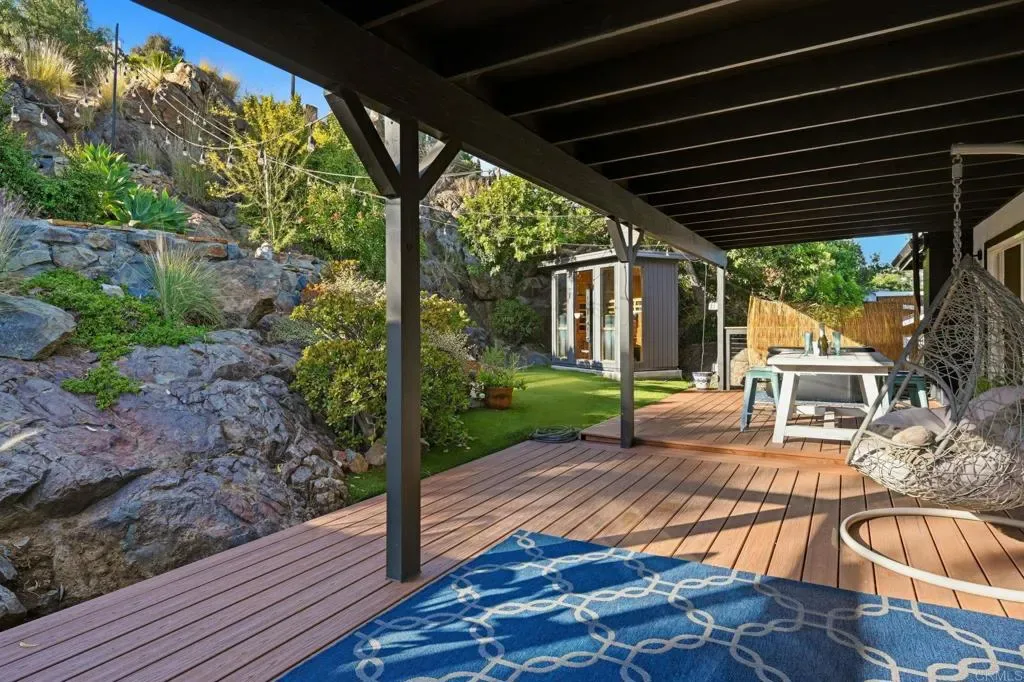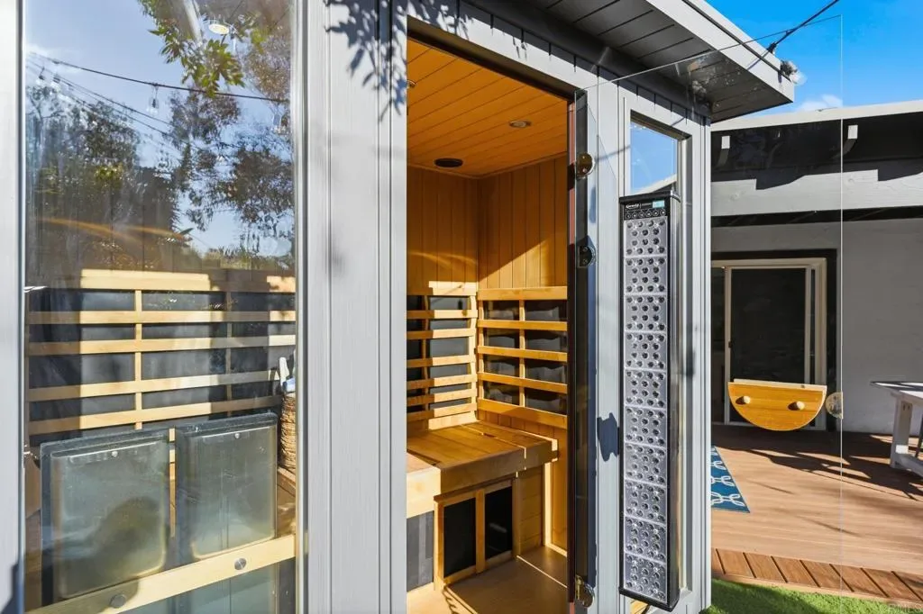 Rare opportunity in La Mesa Country Club neighborhood to live the best of both worlds in this beautifully upgraded home, perched on 0.42 acre of beautifully landscaped terraces where private wellness retreat meets entertainer’s paradise. Enjoy seamless indoor-outdoor living with morning coffee at sunrise on the east-facing, expansive & freshly stained front deck. Step inside to a bright, open layout with premium $40K Andersen patio doors and freshly painted walls, where breakfast flows effortlessly into the living space. Spend the morning outdoors on your multiple back decks or tending to your garden. Recharge in your private oasis wellness retreat, featuring a dry sauna and cold plunge pool, or take some quiet time in the detached she shed. As afternoon turns to evening, gather family & friends in the 1st floor game room equipped with pool and poker tables, fireplace & wet bar. Finish the day watching the sunset colors from one of your private back patios, fully appreciating a home that blends energy-efficient living—with 23 solar panels ~ with wellness & entertainment. Over $198K of recent upgrades. 3-car garage!