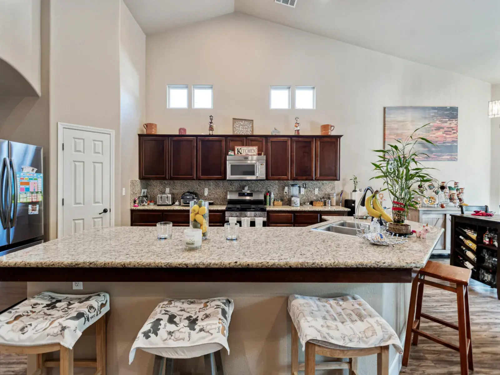Say hello to this beautiful 4-bedroom 2-bath home located inside of the River Island Gated community! It offers an open floor plan with a beautiful kitchen to match. The primary bedroom has charming French doors that lead to space fit for comfort. On top of the stunning primary bedroom, it also has a spacious restroom with a walk-in closet. This home has an additional enclosed room/office,