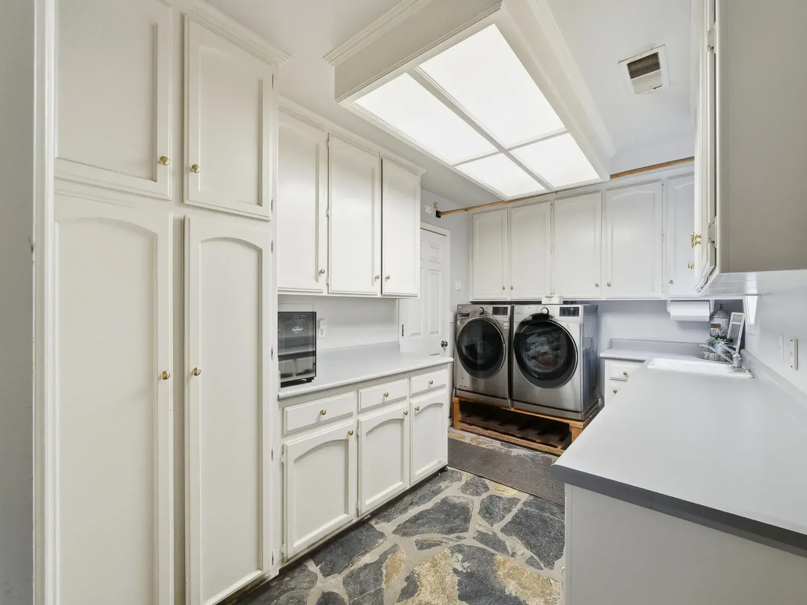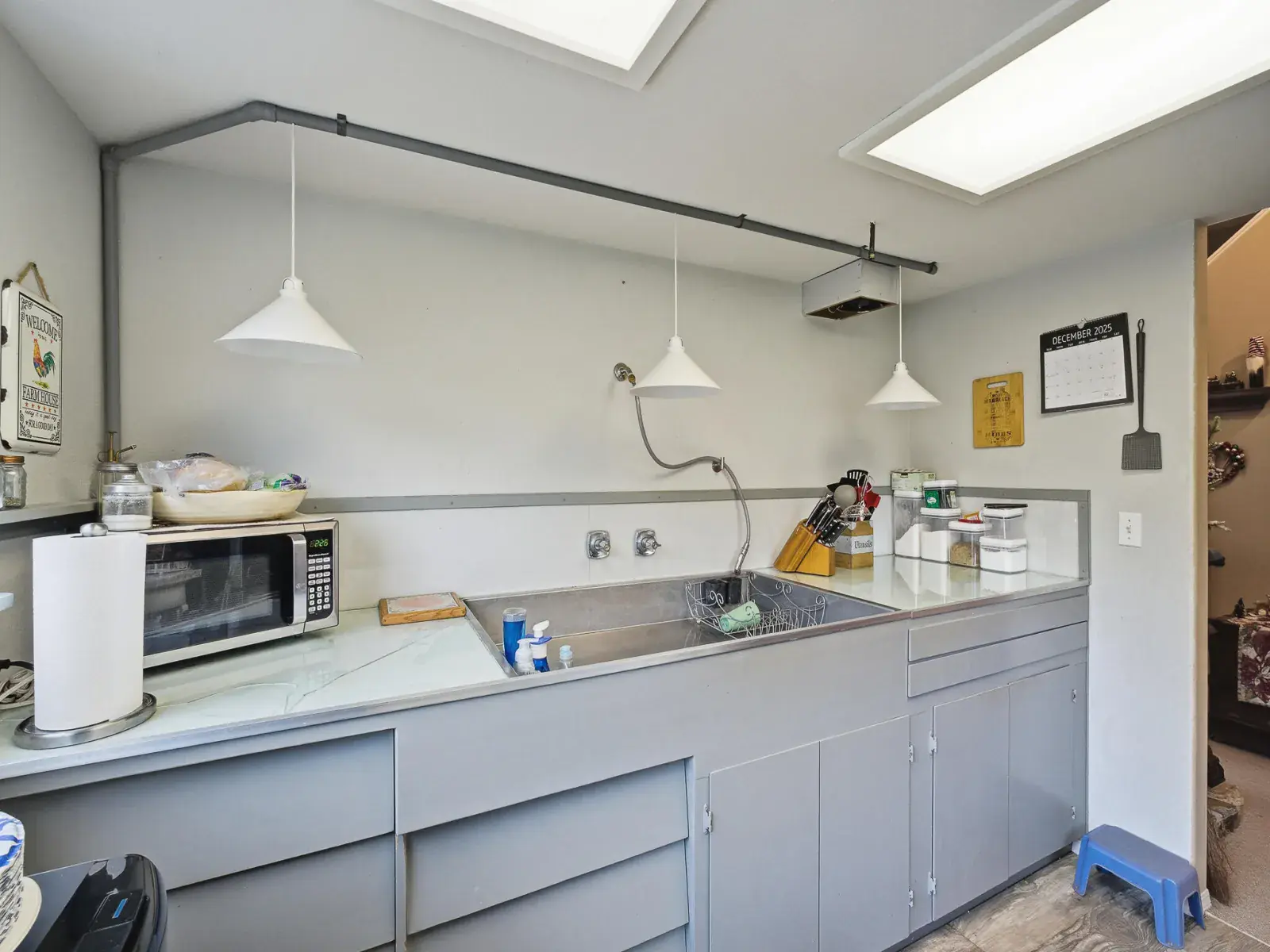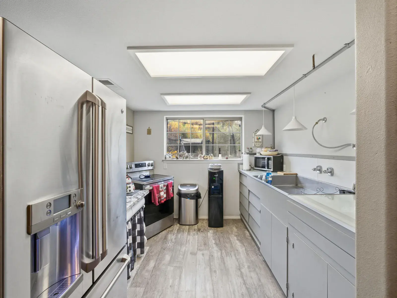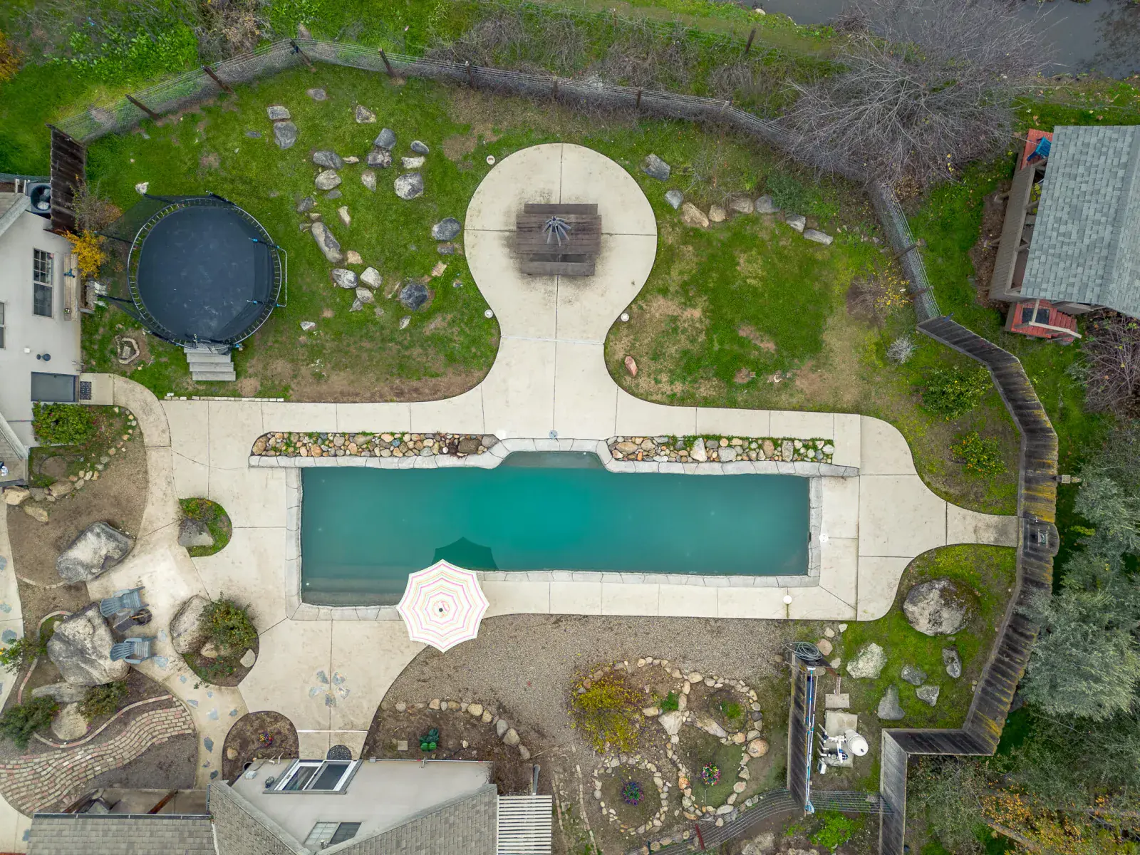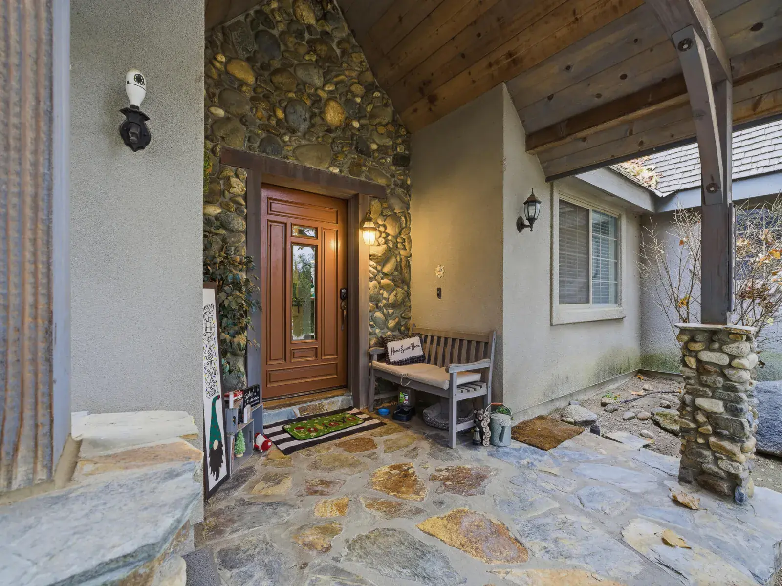 Nestled along an oak tree-lined private drive, this home sits on approximately 2 acres offering plenty of space, privacy, and versatility. Inside, you’ll find a warm and inviting living room with vaulted beamed ceilings, stone fireplace, built-ins, and beautiful natural light filtering through the French doors. The kitchen features vaulted ceilings with exposed beams, a skylight, a large island/breakfast bar with stunning raw-edge granite counters, and space for a casual dining area, with a separate formal dining room nearby. The primary suite offers peaceful views of the backyard along with dual sinks, soaking tub, shower, and two walk-in closets. Upstairs, you’ll find two additional bedrooms connected by a Jack-and-Jill bathroom — with one of the bedrooms featuring an attached bonus room with built-in desks, making it perfect for a study, craft space, or home office setup. A laundry/mud room, 3-car garage, and upstairs computer niche add everyday convenience, while the covered carport with RV clearance and storage shed provide even more functionality. Outdoors, you’ll also enjoy the pond, natural gardens, spa, and 50′ lap pool, along with several mature fruit trees including orange, lime, peach, apple, and plum, creating a setting that feels serene, private, and incredibly special. The true standout of the property is the detached 1,038 sq ft residence, ideal as a guest house, Airbnb, multi-generational living, or more.
