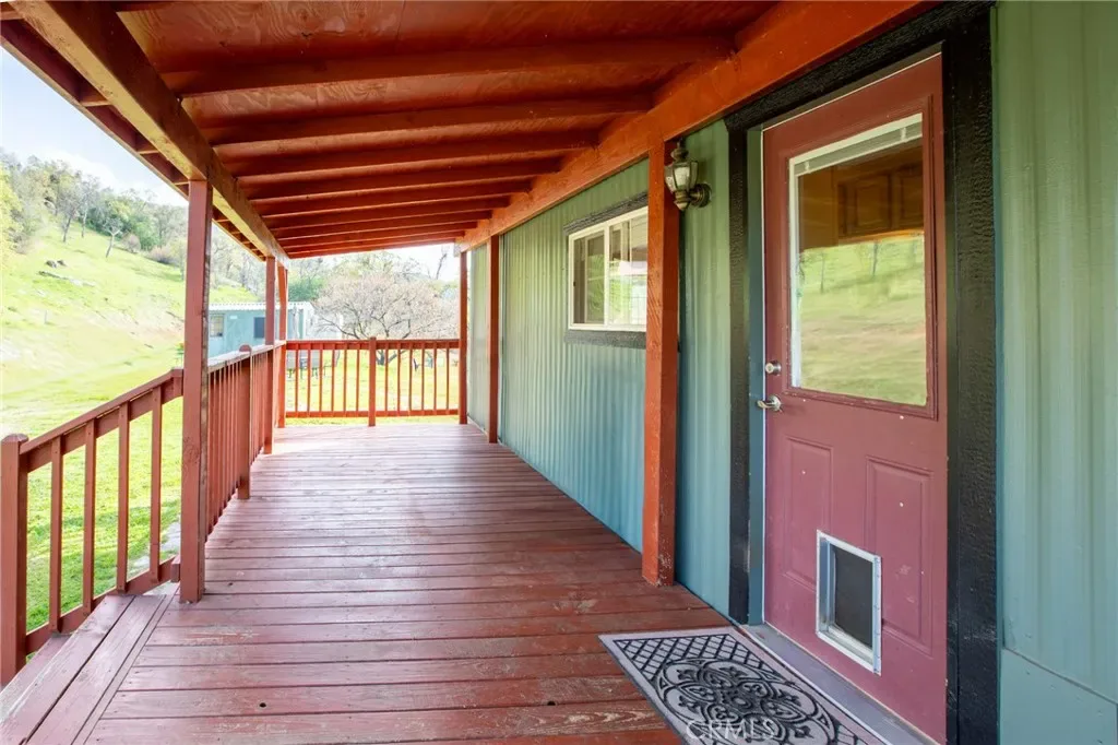 situated on rolling, lush 4.6+- acres of land. Located at a desirable elevation where you can enjoy refreshingly cooler summer nights and just enough of a light winter snow, this home has been meticulously reimagined for both style and efficiency. The exterior is built for peace of mind with a newer metal roof, durable aluminum siding, metal skirting, and dual-pane windows that keep the interior cozy year-round. Step inside to find a light-filled floor plan boasting a chef-inspired kitchen with upgraded cabinetry, tile countertops, and quality flooring that flows seamlessly into the dining area. Both bathrooms have been thoughtfully renovated with custom finishes, complemented by upgraded doors and contemporary laminate flooring throughout the main living space & bedrooms. Beyond the home, this virtual compound is fully fenced with a secure double-gated entry and features a private walking trail that winds through a picturesque landscape of mature oaks, native manzanita, and pine trees. The property offers incredible utility with a good well, a finished storage building equipped with power for your workshop or hobbies, and an easy-to-maintain granite lined driveway leading to expansive level areas perfect for parking or future projects. Whether you are relaxing on the covered front porch or taking in stunning sunsets from the rear covered deck, this turnkey nature lovers retreat offers a rare combination of refined interior style and rugged natural beauty. This home is believed to be on a permanent foundation system with a recorded 433A, offering excellent potential for FHA, VA, or conventional financing. Bath counter may differ from tax records, Buyer to verify. Storage Containers are excluded from the sale.