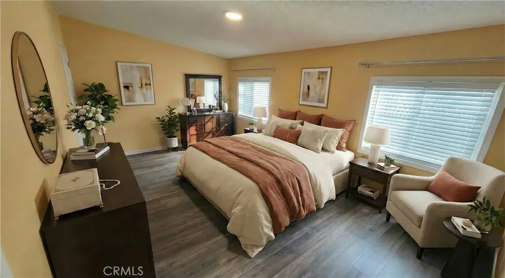 Prime Location! In the heart of Orange county in the beautiful city of Stanton, located in the Katella Estates Mobile Home Park! This beautiful open concept property features 3 bedrooms and 2 bathrooms. The interior features new engineered hardwood floors and designer paint throughout creating a warm and inviting ambiance. The chef inspired kitchen features sleek granite counter tops, and crisp white cabinetry. The living room is glowing in natural light from a soaring architectural skylight, while a classic brick fireplace serves as the perfect addition for that cozy ambiance. The expansive primary suite offers ample space and the primary bathroom features a relaxing bathtub. Enjoy the convenience of dedicated laundry room in the home for added comfort. The included shed offers handy storage for your all your hosting essentials. The enclosed carport provides parking for up to 3 cars. The community is a standout, featuring two sparkling pools, relaxing jacuzzi, a fantastic clubhouse for events, and a community laundry facility. Situated in a highly desirable location just minutes from the 22, 405, and 91 freeways. A short stroll or drive to the trendy Rodeo 39 public market, Stanton Central Park, and the premier many shopping/dinning options on Beach Blvd. Just 10-15 minutes from Disneyland, Knott’s Berry Farm, and the Honda Center. This move-in-ready 3-bed, 2-bath gem offers unbeatable value and convenience! This home will not last!