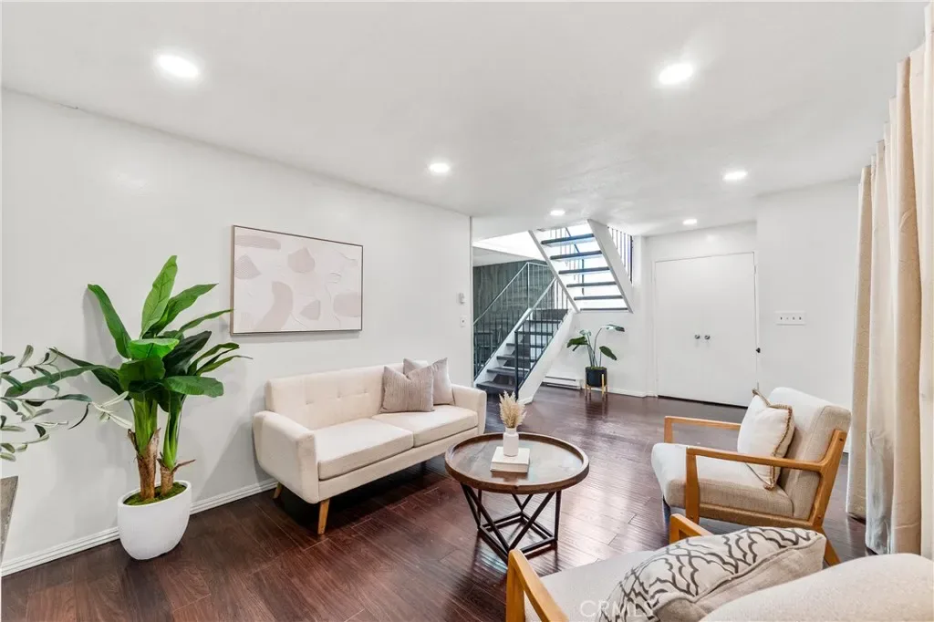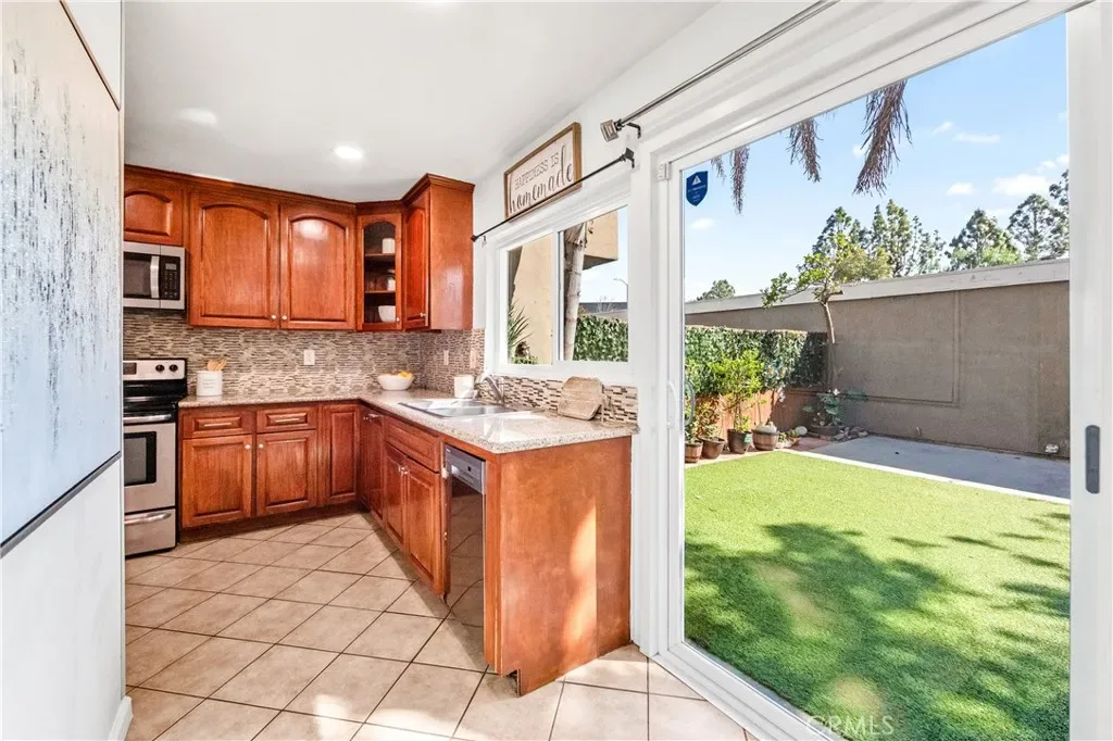 Rarely available end unit townhome in the desirable Bradford Place community of Stanton. This spacious 4 bedroom, 2 bath home is the largest model in the community and features a remodeled kitchen with granite countertops, ample cabinet space, and views of the oversized private patio perfect for relaxing or entertaining. The home offers laminate wood flooring downstairs, dual pane vinyl windows, and updated bathrooms with tile and granite finishes. All four bedrooms are conveniently located upstairs. Enjoy direct access to the large private patio and a two car garage, creating great indoor outdoor living. Bradford Place features beautifully maintained greenbelts, a community pool, clubhouse, and playground areas. Conveniently located near shopping, dining, and freeway access for an easy commute. Best of all, it is located within the award winning Garden Grove Unified School District, including Pacifica High School and Bell Intermediate.