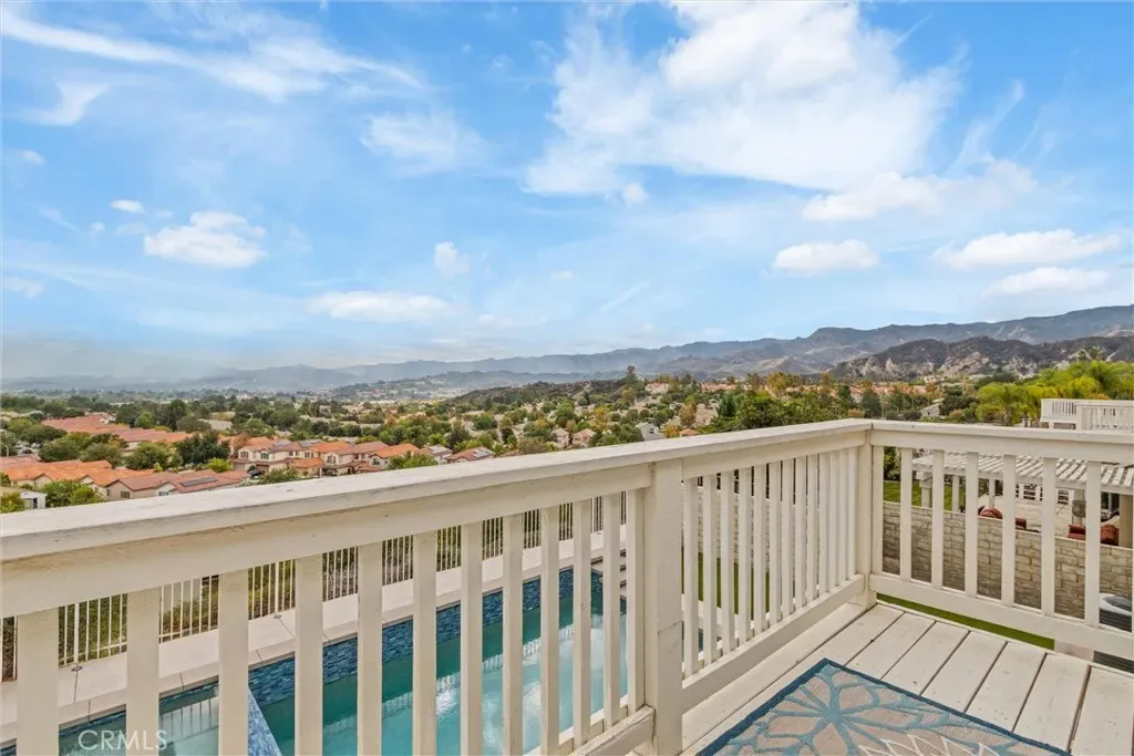 Welcome to your dream home in the heart of Stevenson Ranch. This beautifully designed two-story residence offers 4 spacious bedrooms and 2.5 baths, including a convenient main-floor bedroom ideal for guests or a home office. From the moment you enter, soaring vaulted ceilings and a grand staircase create an inviting sense of elegance and space. The home features an immaculate open-concept living area with a formal dining room, a cozy family room with a masonry fireplace, and elegant travertine tile flooring. The gourmet kitchen is a true showstopper, complete with Caesarstone countertops, a large center island, gas cooktop, dual ovens, and ample cabinetry—perfect for entertaining or everyday living. Enjoy breathtaking panoramic views of the Santa Clarita Valley from the kitchen, dining area, family room, and the luxurious master suite. Upstairs, you’ll find three generously sized bedrooms, including a stunning primary suite with sloped ceilings, a private balcony, and a spacious ensuite bath featuring dual vanities, a soaking tub, and a separate shower. Step outside to your private backyard oasis, designed for both relaxation and entertaining. Take in the valley views while enjoying the sparkling pool and spa, concrete patio, and low-maintenance artificial turf—perfect for year-round enjoyment. Additional highlights include solar power, whole-house water filtration, a two-car garage, low HOA, and location within the highly sought-after William S. Hart School District. Ideally situated close to shopping, dining, parks, and easy freeway access, this pristine view home is located in one of Stevenson Ranch’s most desirable neighborhoods. With exceptional space, views, and value, this home is not to be missed—schedule your private showing today before it’s gone.