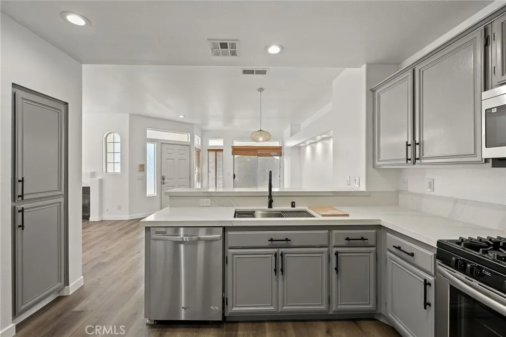 Come see the best of Stevenson Ranch with breath-taking views within walking distance. Welcome home to your remodeled, upper level, single-story condominium. The upgraded kitchen boasts new quartz countertops and a large, stainless steel sink along with newly painted cabinets. The living room features many windows allowing endless sunlight. Your morning coffee will be amazing while enjoying your private patio or porch. Gas fireplace for those cozy evenings. The Primary bedroom features a newly remodeled bathroom with new sinks and quartz countertops to match the kitchen alure. All rooms have been painted and all baseboards have been replaced. Recessed lighting has upgraded to appear fresh and modern. New vinyl wood flooring throughout. Attached single car garage and a dedicated covered carport. Washer and dryer hook ups within their own dedicated area. You are literally steps away from the HOA pool and jacuzzi and can enjoy yearlong. Walking distance to a Blue Ribbon elementary school and gorgeous Richard Rioux Park. Award-winning middle school and West Ranch high school. Shopping and freeway close with 2 nearby grocery stores and Starbucks. Welcome home!