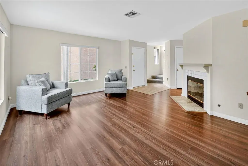 Darling townhome in Stevenson Ranch. 2 Bedrooms upstairs, each with their own bathroom. Fresh interior paint just finished 12/8/25. New carpet installed in both bedrooms, 12/10/25. Downstairs features a fireplace, good sized kitchen, powder room, and beautiful laminate flooring. Step outside through the slider to a lovely patio where you can enjoy the outdoors. Good location across from guest parking. Sise by side 2 car garage. Washer/Dryer and refrigerator are included. HOA amenities include pool/spa, and park areas.