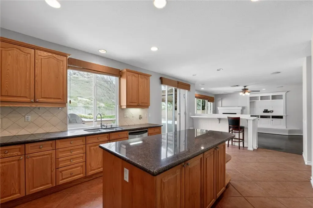 This 5-bedroom, 4-bathroom home offers 3,738 square feet of comfortable, well-appointed living space. The open floor plan features a spacious family room with fireplace, flowing into a well-equipped kitchen with stainless steel appliances, a large center island, maple cabinetry and walk-in pantry. From the Kitchen, the French doors lead to a charming and secluded backyard made for entertaining — a built-in BBQ with granite counter tops, a covered patio and a private pool and jacuzzi provide the elements for a relaxing experience, all surrounded by an easy-to-manage landscaping and outstanding hill views. A main floor bedroom and full bath add flexibility for guests or multigenerational living.