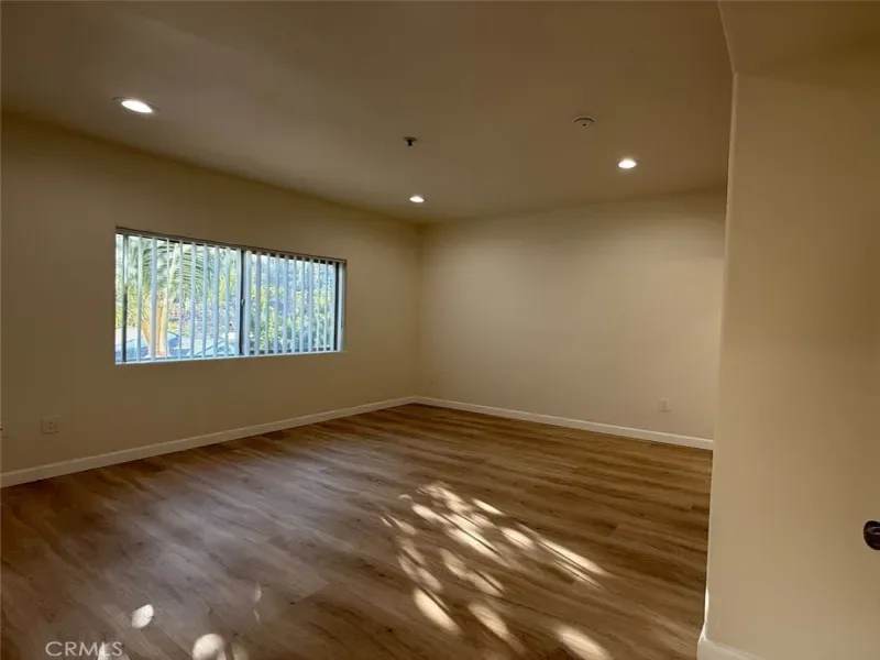 Flooded with natural light, the front-facing unit features an expansive private balcony with captivating views—perfect for enjoying Southern California’s indoor-outdoor lifestyle. The open-concept living space is highlighted by rich wood flooring, a cozy fireplace, and elegant recessed lighting throughout, creating a warm yet sophisticated ambiance.