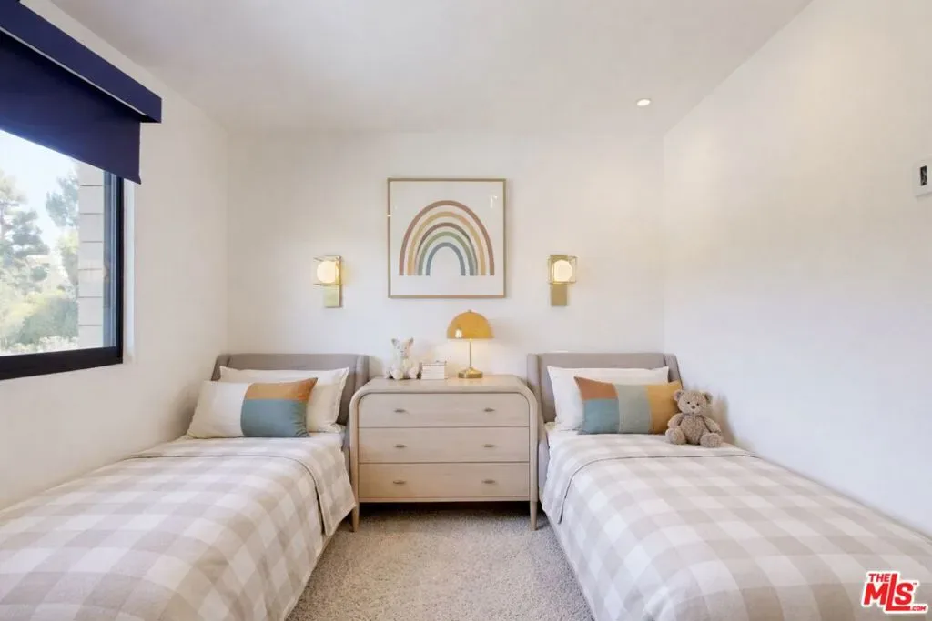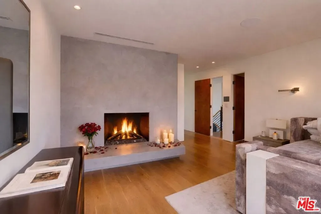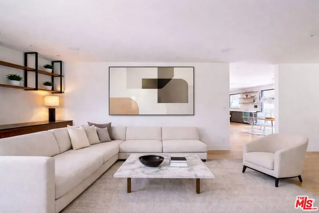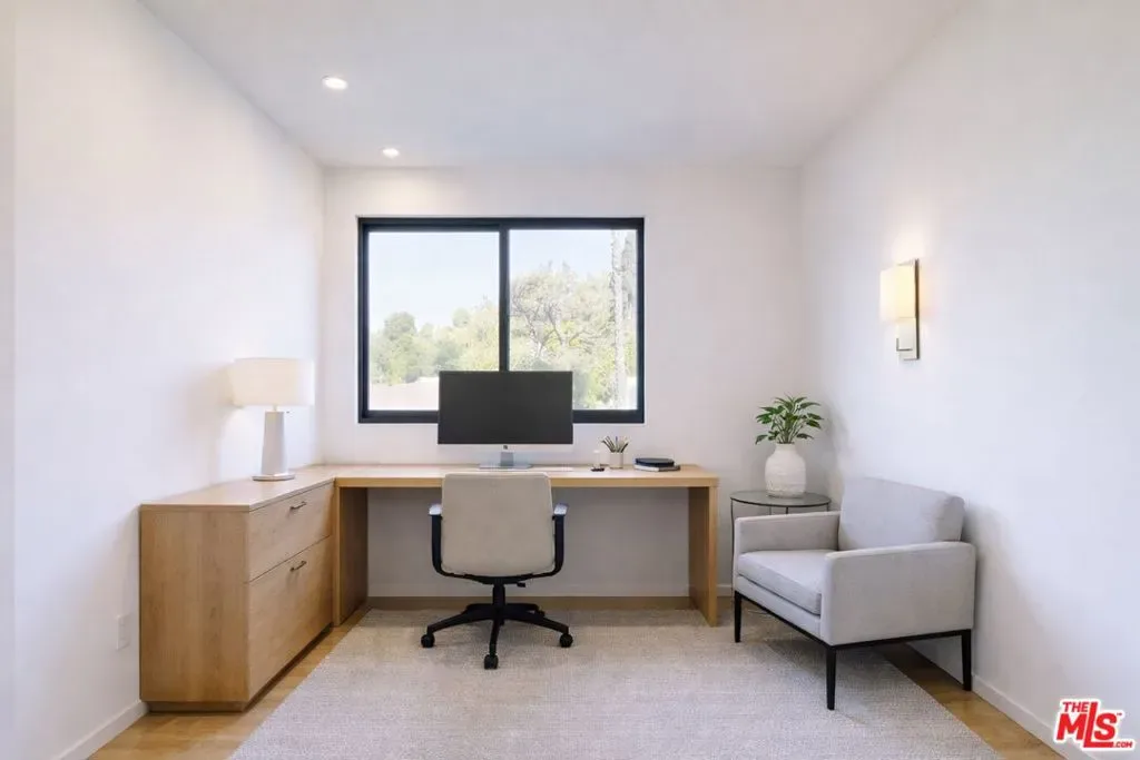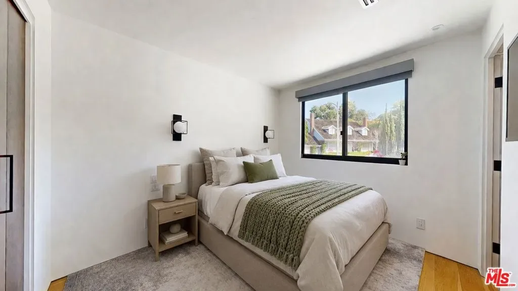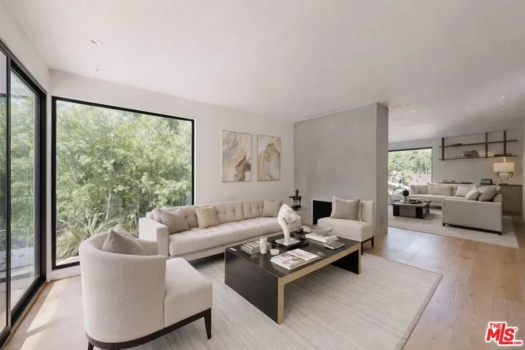 Perched atop a knoll on one of the most sought-after streets in the Donas, one of Studio City’s most prestigious neighborhoods, this newly renovated contemporary residence captures sweeping panoramic views across the Mulholland Corridor from nearly every room, seamlessly blending timeless Mid-Century design with elevated modern finishes across approximately 3,900 square feet of gated, private living space. A striking entry opens to soaring ceilings and walls of glass that flood the interiors with natural light, flowing effortlessly into expansive living areas including a refined formal living room, a warm and inviting family room with bar and fireplace, and an elegant dining room set just off the sleek, designer kitchen outfitted with high-end appliances. A dramatic glass-filled atrium with approximately 30-foot ceilings serves as a stunning architectural centerpiece, enhancing the home’s sense of scale and openness. The main level also offers a versatile en-suite bedroom, ideal for guests, a home office, or staff quarters. Upstairs, the spacious primary suite is a true retreat, featuring dual walk-in closets, a spa-inspired bath with refined finishes, a private balcony, and a sitting area with breathtaking views, while additional bedrooms are generously sized and appointed with en-suite baths and custom-fitted closets. Designed for seamless indoor-outdoor living, retractable windows and Fleetwood sliding doors open to an expansive entertainer’s yard with a large terrace for al fresco dining, a sparkling pool, cabana, and built-in barbecue. Ideally located just moments from the Westside, Ventura Boulevard’s shops and restaurants, and the scenic hiking trails of Fryman Canyon, and situated within the highly regarded Carpenter Charter School district, this exceptional offering presents a rare opportunity to own a beautifully reimagined home that effortlessly balances architectural character with modern luxury.