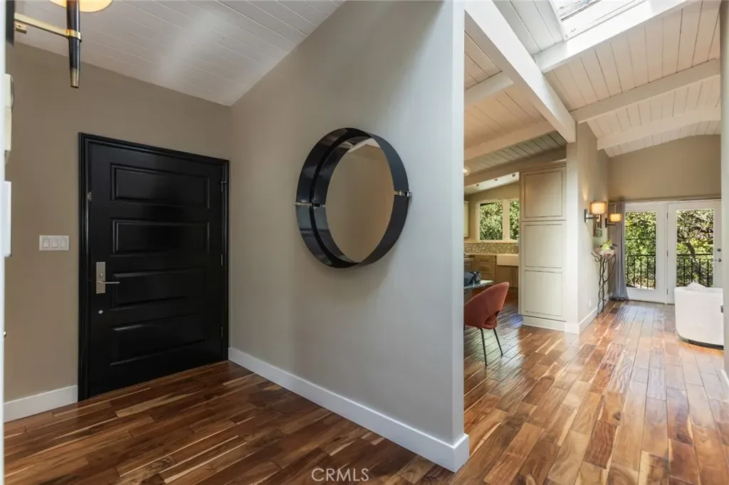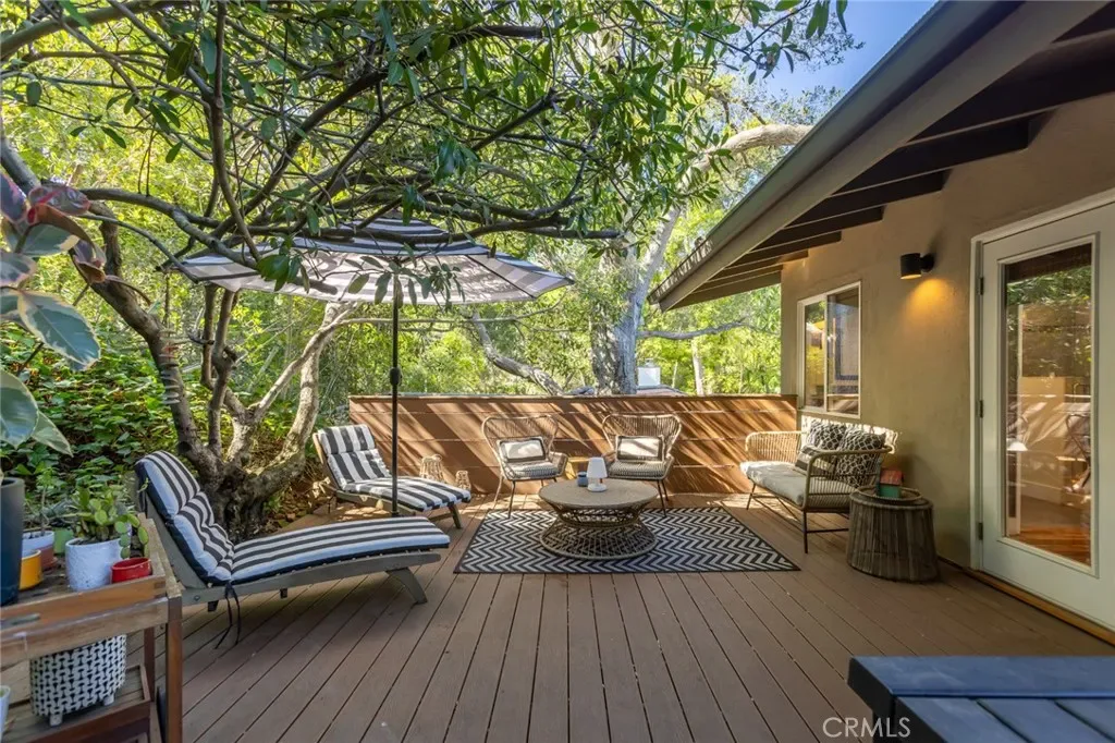 This is the home the sophisticated buyer is dreaming about, a rare opportunity to own an incredible custom mid-century modern home in the hills of Studio City and located in Carpenter Charter Elementary School. Minutes from Fryman hiking trails, the Studio City Sunday Farmer’s Market and Studio City’s famous Shushi Row!! This home is situated above the street and is incredibly private with tree-top views from almost every room. Enter this exquisitely maintained home through its formal entry. The formal dining room and living room have French doors that let in natural light and fresh air. The kitchen has been remodeled and has a breakfast bar, stainless steel appliances, farmhouse sink and Ceasarstone countertops and treetop views from the kitchen sink. You will never have a dull moment when cleaning up after a meal with family and friends. The living room has vaulted ceilings, a corner fireplace and access to the wraparound patio. The primary bedroom is situated on the second floor, has a walk-in closet, private bathroom, treetop views and large private patio. The two secondary bedrooms are located on the first floor and share a bathroom that has been beautifully remodeled, maintaining the aesthetic midcentury appeal of this home. Both bedrooms have French doors and open to the yard. Separate laundry room, two car garage electric driveway gate, security gate for visitors and plenty of off-street parking are just some of the features that make this home unique. First time on the market in 24 years.