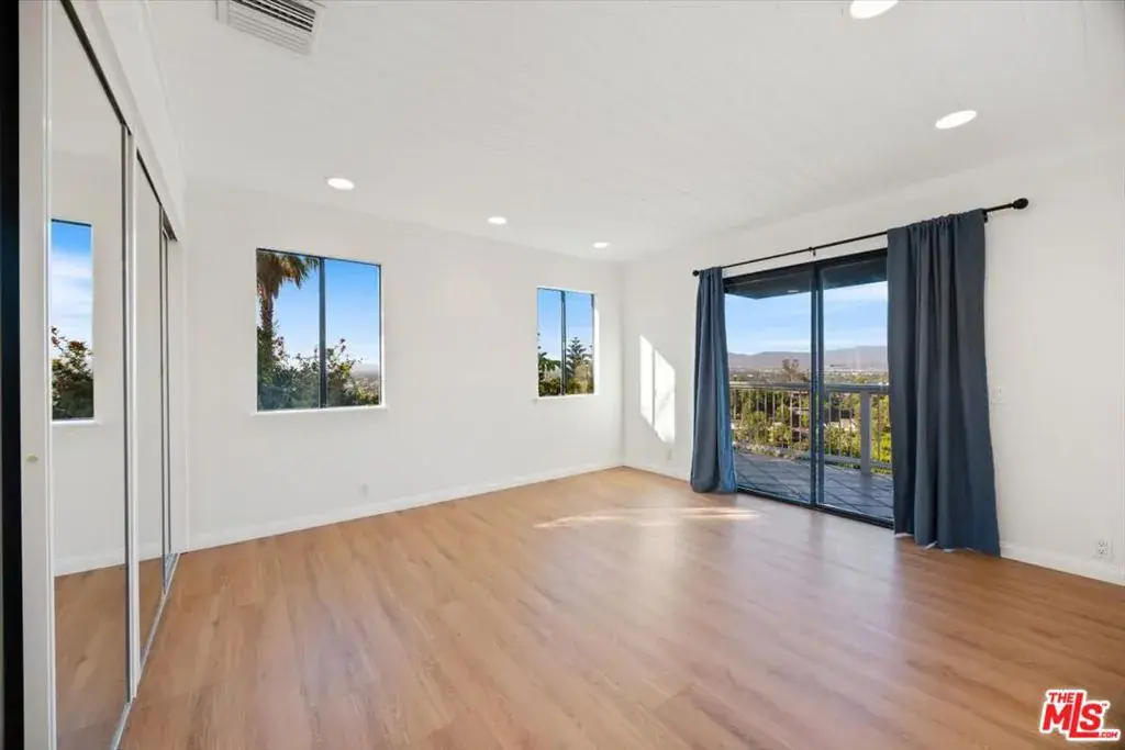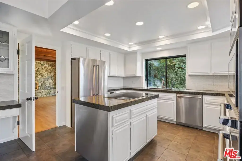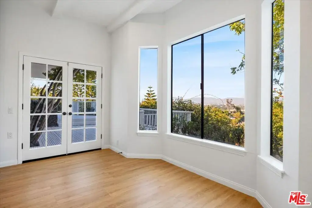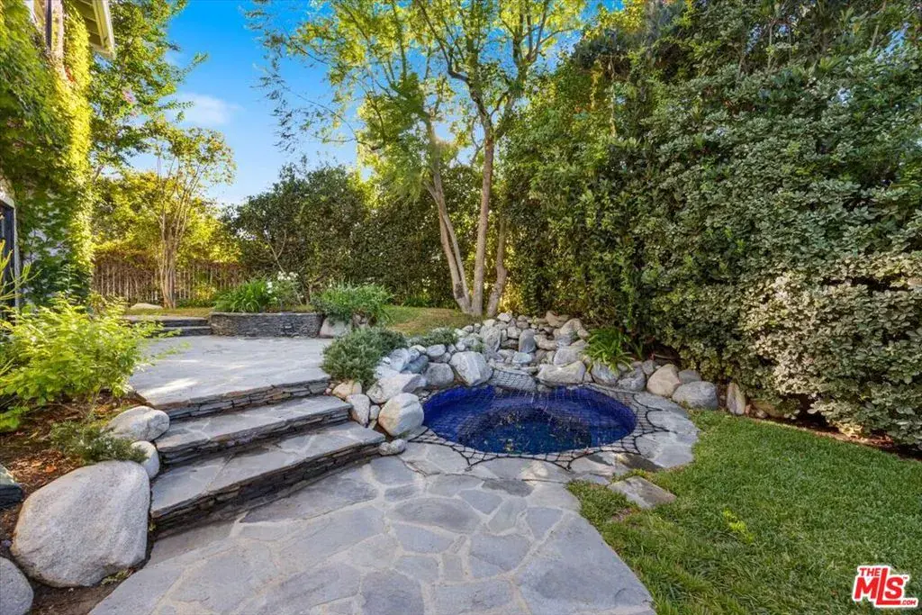 This exquisite 4-bedroom, 3.5-bathroom home, located in a 6 home gated community, high up in the serene hills of Studio City south of Ventura Boulevard. Enjoy breathtaking panoramic views of the Valley all the way to the Santa Susana mountains. The updated kitchen boasts high-end appliances, including a Bosch dishwasher, Thermador induction cooktop, oven, and microwave, a KitchenAid refrigerator and trash compactor. The formal dining room is filled with natural light and offers a gorgeous view of the outside deck, which overlooks the hillside and features a built-in BBQ and refrigerator perfect for gatherings with friends and family. The spacious living room features a charming brick fireplace. Designed for entertaining, the family room includes a river rock fireplace, wet bar, wine cooler, and French doors that open to an in-ground waterfall spa, easily controlled with Aquatic control technology, and surrounded by a lush grassy area. The enormous primary suite features a brick fireplace, dual walk-in closets, an en suite bathroom with double vanity sinks, a separate water closet, a walk-in shower, a large soaking tub, and a balcony with stunning valley and mountain views. Additional amenities include a 3-car garage with extra parking for three more vehicles on the driveway, an alarm system, Nest thermostat, and a ChargePoint Home Flex Level 2 EV Charger. Perfect for those seeking privacy and tranquility, the property is surrounded by large hedges and spa/fountain features, creating a peaceful escape from city life. Enjoy close proximity to trendy restaurants and chic boutiques, all within the desirable Carpenter School District.