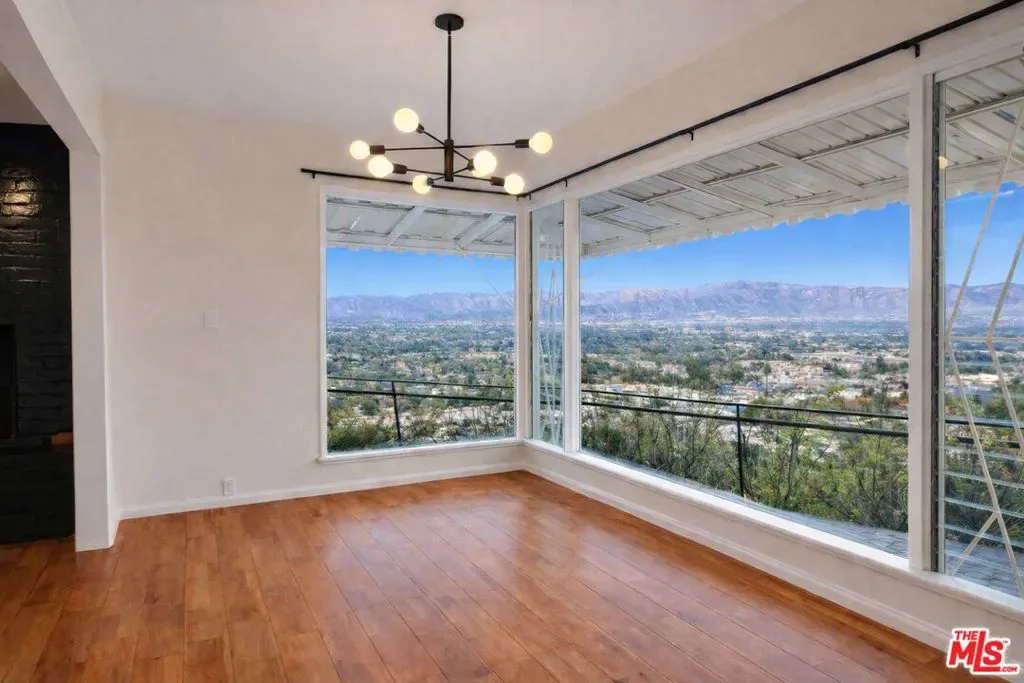 Hidden behind gates on a scenic Studio City hillside, you arrive at this striking mid century residence and immediately feel a sense of privacy as the driveway opens up to plenty of parking and a direct path toward the backyard where panoramic city to mountain views reveal themselves the moment you pull in. Alternatively, step through the front door and you’re met with that same cinematic view framed through expansive glass, as natural light pours into the open living spaces. The kitchen flows effortlessly into the dining room and main living area anchored by a statement fireplace. The home offers three bedrooms and three bathrooms, along with a two car garage that can easily be reimagined as a music studio, home office, or gym. Seamless indoor outdoor flow opens to a generous backyard with room for a hot tub, grill, and lounge areas to sunbathe, all set against clear city and mountain views where you can take in fireworks from every angle on the Fourth of July and celebrate with friends or privately unwind under the full moon and stars.