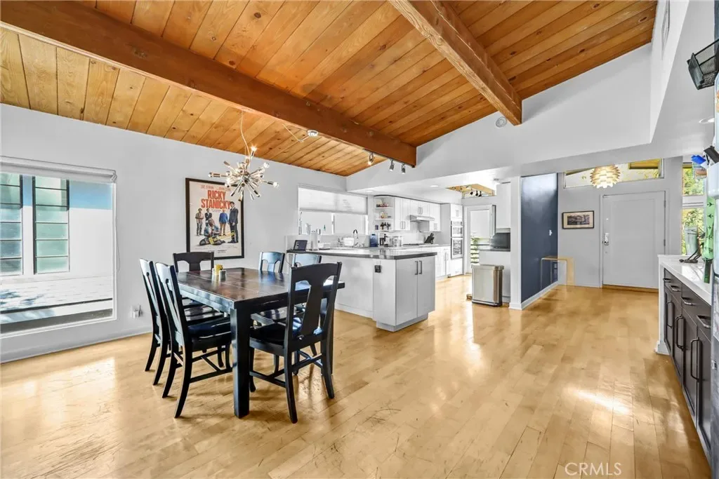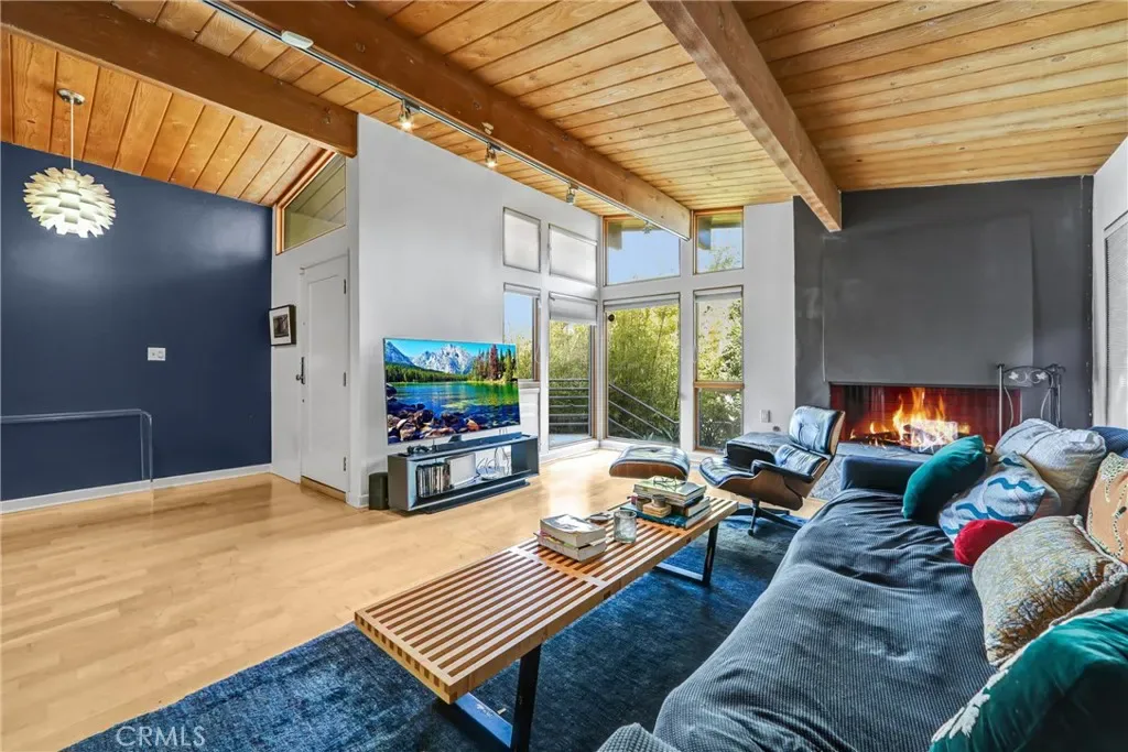 Here’s your opportunity to live up in the hills of The Silver Triangle, one of the most coveted neighborhoods in Los Angeles and the valley. Stunning mountain and canyon views just off of Laurel Canyon. Welcome to this three bedroom, three bath home that features over 2250 square feet of living area. The terrific open flowing floorplan is an entertainer’s delight. Step into this light and bright home with walls of glass…all natural openness! The recently redone gourmet kitchen features impeccable quartz counters, a five gas burner cooktop with Zephyr vented hood, KitchenAid oven and microwave, LG dishwasher, and designer self closing drawers and doors. Enjoy your breakfast or light meal on the bar separating the dining area. The spacious living room features vaulted wood beamed ceilings, a stone faced wood burning fireplace and flowing solid hardwood floors. Wow…those floor to ceiling windows with custom window treatments gives such great detailing. All bedrooms are on the main level and the primary features a great deck that opens and looks out to the Laurel Canyon…amazing. The lower level bonus/family/studio is really special with it’s gorgeous stone tile flooring throughout. This great room steps out to the resort-like pebble-tec pool and space…gorgeous canyon views from here as well. There is a private bath and the laundry room is down there…could be a great guest suite as well. The HVAC is controlled by Nest settings. There is a private security system is in place. Tankless water heater. This home sits in the highly desired Carpenter Charter and Walter Reed School districts. Easy access into the studios and easy to get over to the westside. Minutes to the boulevard. Such a quiet and pristine neighborhood. Great opportunity to call this one home!