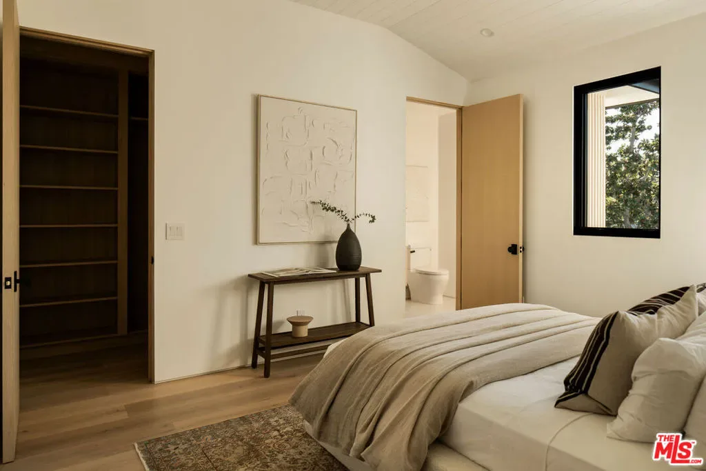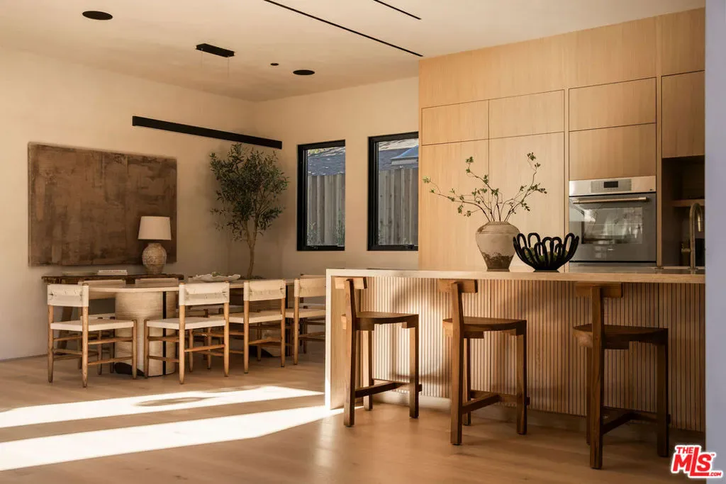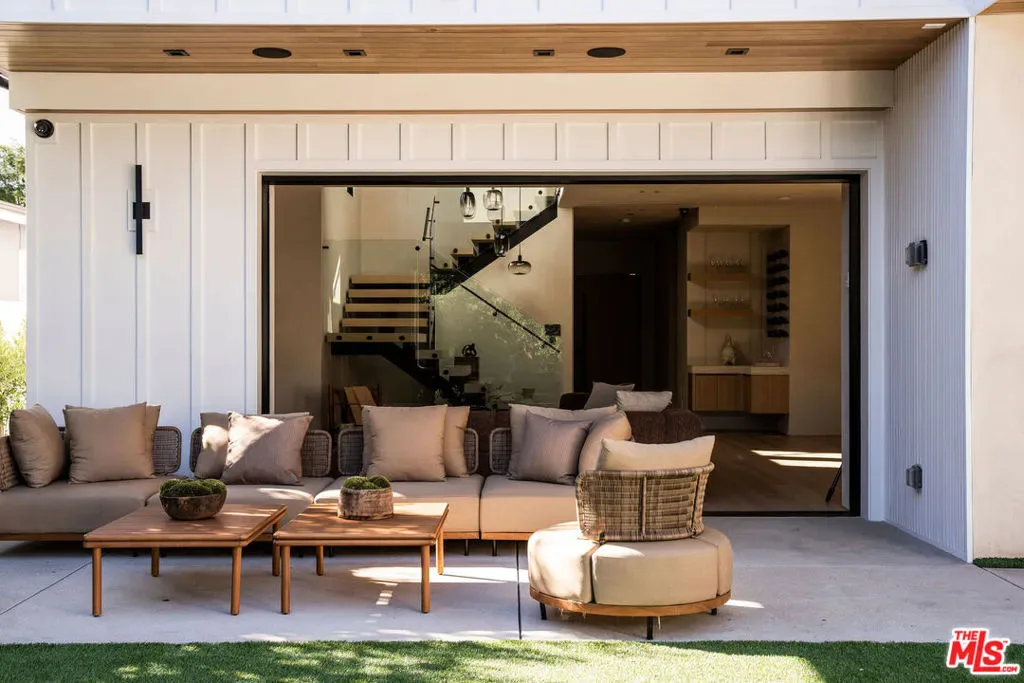 Defined by craftsmanship and intention, this brand new construction and fully-gated residence on Kraft Avenue presents a refined take on contemporary luxury in the heart of the Colfax Meadows. Conceived with an emphasis on proportion and materiality, this five bedroom, six bathroom home features high ceilings, natural materials, white oak floors, and a spacious backyard. The composed open layout connects formal living and dining spaces to a chef’s kitchen anchored by an oversized 10-foot travertine island, a full suite of Thermador appliances, custom range hood, pot filler, and a service window bar to for effortless entertaining. In the living room, a floor to ceiling travertine fireplace serves as a striking architectural focal point while also creating a cozy ambiance. Expansive glass pocket doors tuck away entirely and open to a private backyard with a resort style pool and spa, built in barbecue, covered patio, and a curated outdoor space. One ensuite bedroom is thoughtfully placed on the main level, while the second level is anchored by a serene primary suite with a private balcony, spa inspired bath, and custom walk in closet, complemented by three additional bedrooms on the top floor. A detached guest house featuring a sitting area, wet bar and an adjacent bath enhances the backyard experience, offering a refined space for lounging or hosting. Tech-forward features include a Control4 smart system, integrated security, cameras, and multi-zoned HVAC. Located within the Carpenter School District and moments from Ventura Boulevard and major studios, this residence balances discretion, design, and lifestyle.