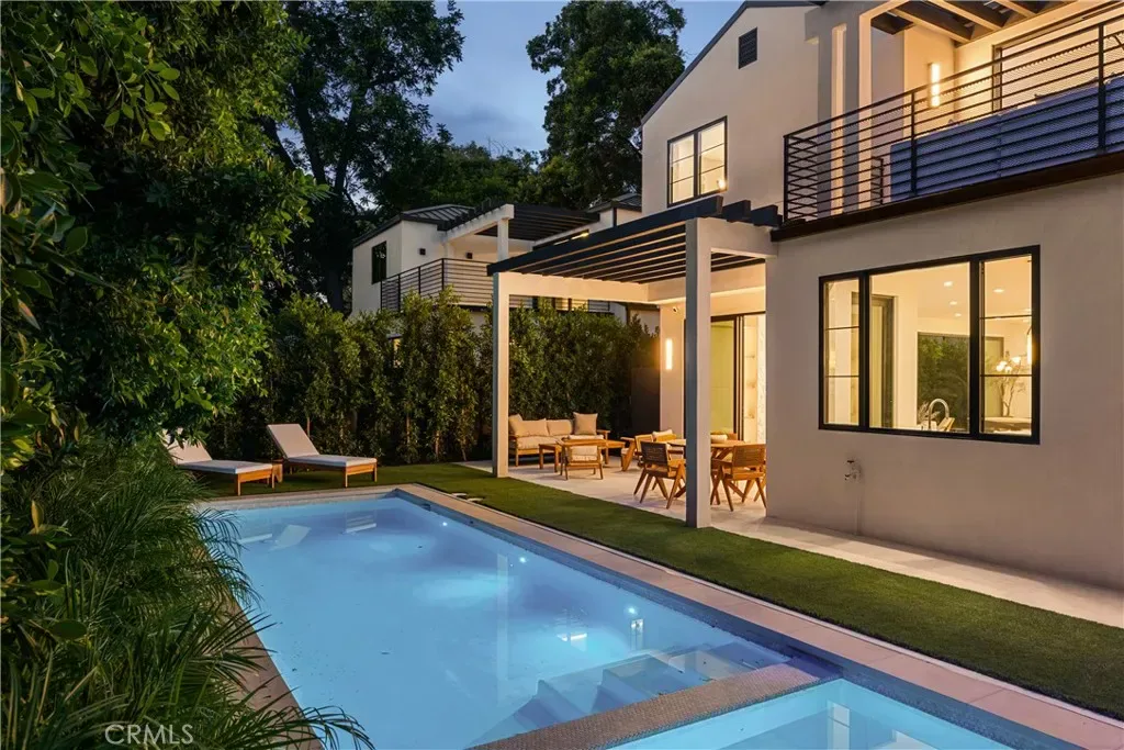 A bold statement in modern luxury living, this brand-new construction home is situated on a quiet tree-lined street in prime Studio City. Showcasing thoughtful design throughout, the bright and airy open-concept floor plan is defined by lofty ceilings and a spacious, flowing layout. At the heart of the home lies every culinary enthusiast’s dream, a designer kitchen equipped with a La Cornue range as its centerpiece, high-end Thermador appliances, a stunning waterfall island and walk-in pantry. The adjacent living room and formal dining area are highlighted by a dramatic fireplace framed by custom built-ins and two oversized sliding glass doors that seamlessly extend your living space outside – ideal for entertaining. Step out to your tranquil backyard retreat and enjoy the best of outdoor living with a sparkling pool/spa, built-in BBQ and plenty of patio space for sun-soaked lounging or al-fresco dining. Upstairs, there are three generously sized ensuite bedrooms and a dedicated laundry room. The primary suite features a private balcony, custom walk-in closet and spa-inspired bathroom, complete with a soaking tub, steam shower and double vanity. Boasting its own private entrance, the attached guest suite offers a living room with a kitchenette and ensuite bedroom with a walk-in closet – perfect for a home office/gym/studio, guests or multigenerational living. Additional highlights include a wine cellar, smart home features (Ring security system, Nest thermostat, Lutron lights), a gated front courtyard and two-car garage. This property is ideally located within the top-rated Carpenter School District and just moments away from Ventura Boulevard’s vibrant shopping and dining scene, the Studio City Farmers Market and so much more.
