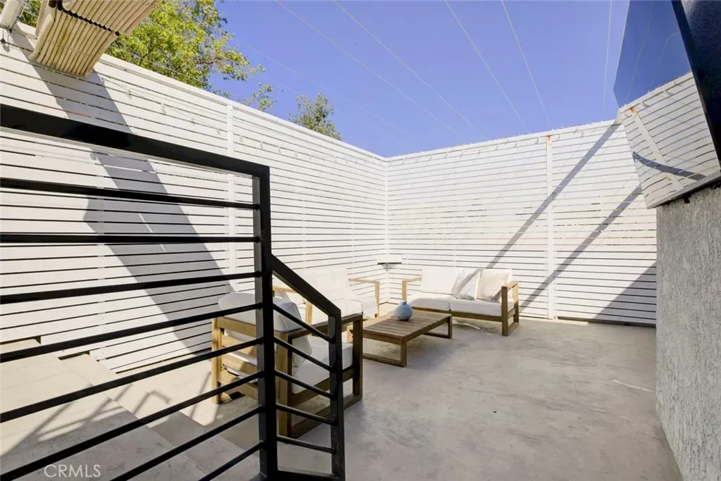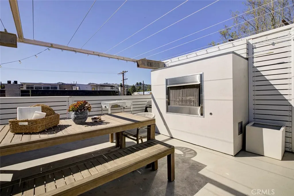 One of the home’s standout features is the private rooftop patio, offering a serene escape with space for lounging, dining, or enjoying the Southern California sunshine.