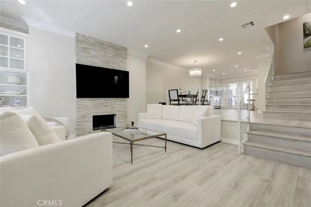 Step into a spacious open-concept living area featuring a cozy fireplace, perfect for relaxing evenings or entertaining guests. The thoughtfully updated interior showcases high-end finishes, abundant natural light, and seamless flow from room to room. The gourmet kitchen and dining space are ideal for both everyday living and hosting.