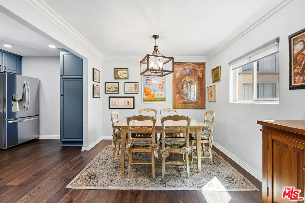 Tucked away and remarkably quiet, private rear unit in the heart of Studio City. This exceptional residence offers a rare sense of privacy and separation from the energy of the street, creating an unexpected retreat in one of the neighborhood’s most vibrant locations. The bright and inviting single-level layout features an open-concept living, dining, and kitchen area anchored by a cozy fireplace and private balcony, perfect for morning coffee or unwinding at the end of the day. The kitchen is tastefully updated with sleek modern countertops, stylish cabinetry, and stainless steel appliances including a double oven range.The spacious primary suite includes a beautifully remodeled en-suite bathroom and walk-in closet with in-unit washer and dryer. A well-separated second bedroom, ideal for guests or a home office, offers generous closet space and access to a fully remodeled hall bathroom, both updated by the current owner with a clean, modern aesthetic. Both bedrooms are positioned for privacy with no direct-facing units. Additional features include engineered wood and LVT flooring, central air and heat, Nest thermostat, dual-pane windows, recessed lighting, crown moldings, and custom window treatments throughout. This boutique, controlled-access building offers an on-site gym, two side-by-side parking spaces, and dedicated storage. Ideally located near Ventura Boulevard, The Shops at Sportsmen’s Lodge, and with easy freeway access.A rare combination of privacy, updates, and location, move-in ready and quietly set where you want to be in Studio City.
