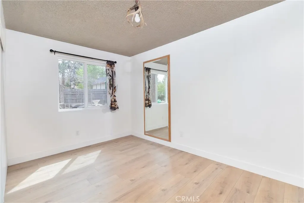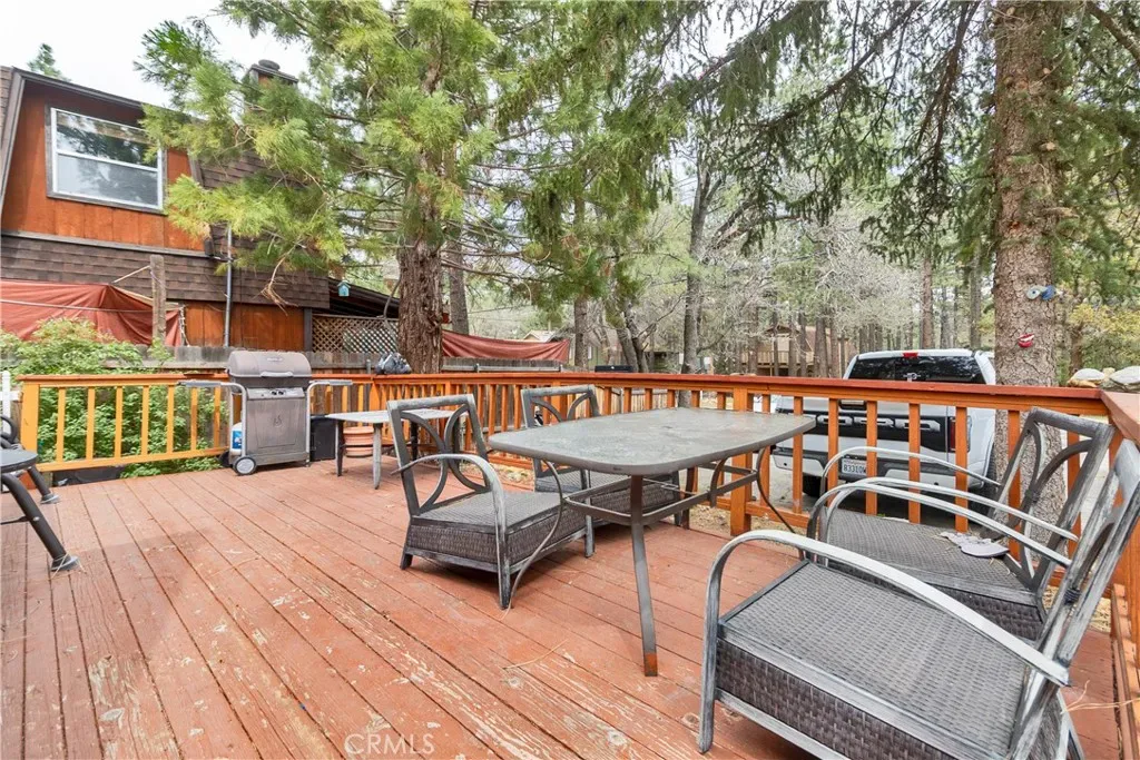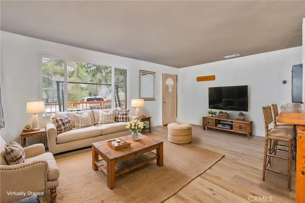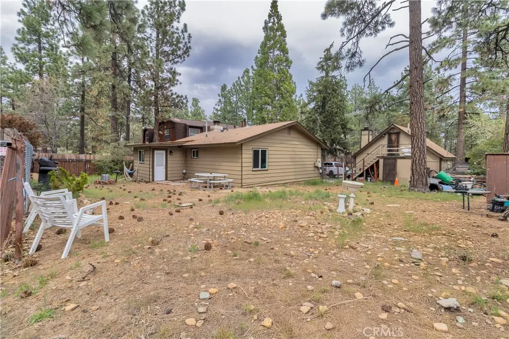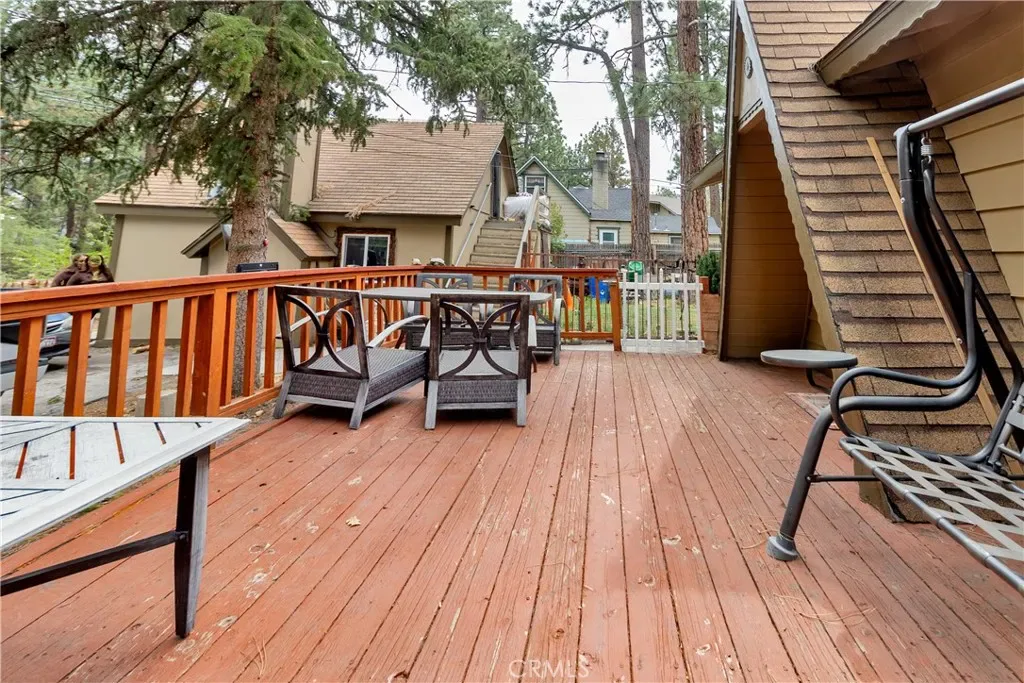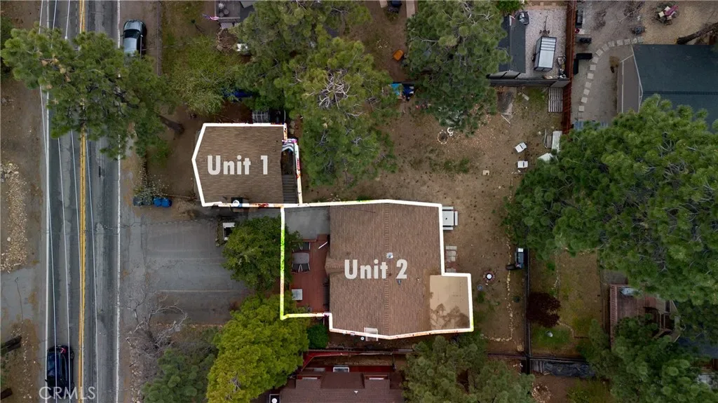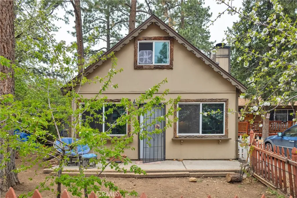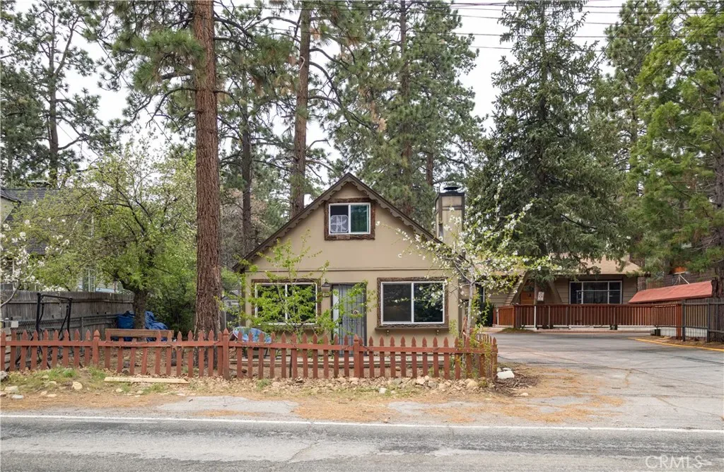 Excellent income and investment opportunity—two cabins on one lot in the Sugarloaf area of Big Bear. The two-story 1BD/1BA cabin (approx. 600 sq ft) features the bedroom upstairs with kitchen, living room, and bathroom on the main level. Updates include new kitchen cabinets, a recently painted bathroom with new vanity, and a front patio. The single-story 2BD/1BA cabin (approx. 920 sq ft) offers refreshed kitchen cabinets, new bathroom vanity, fresh interior paint, a private front deck, and private indoor laundry. Both units share a large backyard that can be easily separated by fencing. Separate gas and electric meters; shared water meter. Parking for four cars in shared driveway. Situated on an approx. 8,015 sq ft lot, located 10 minutes from downtown Big Bear, near a fire station, post office, and high school, with seasonal snowfall. Suitable for short-term rental, long-term rental, or personal use. Buyer to verify all uses and regulations.