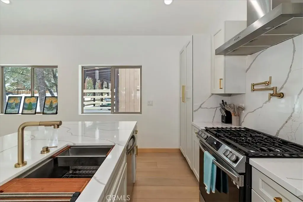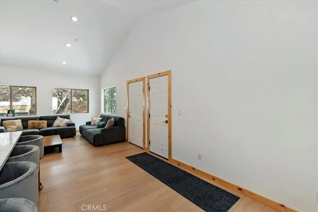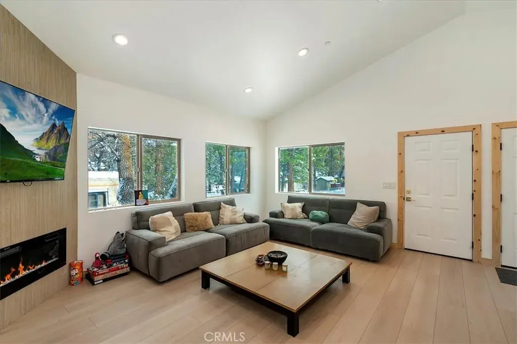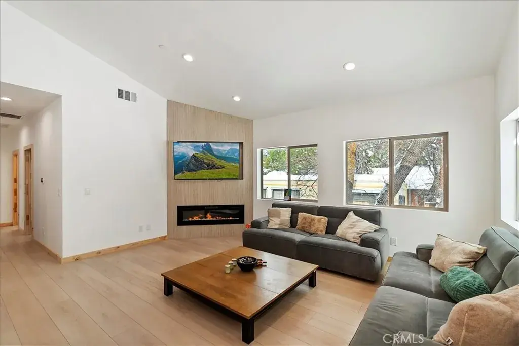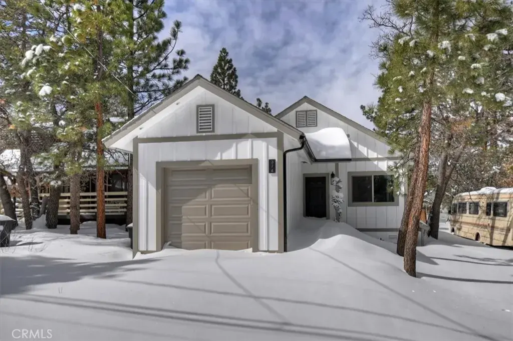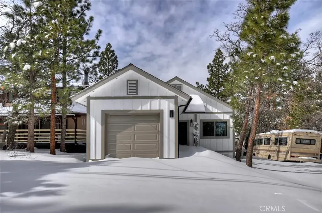 LOW MAINTENANCE MOUNTAIN LIVING! Nearly new. Single Level. Effortless Living. Built just 2 1/2 years ago, this modern mountain home offers the rare combination of single-level design; Energy-efficient systems; Turn-key condition; Minimal exterior upkeep. Perfect for buyers who want to enjoy Big Bear — not maintain it. Thoughtfully designed floor plan that maximizes every square foot. No wasted space. No stairs. No projects. Open concept layout with vaulted ceilings, high quality finishes. Kitchen has soft close cabinetry and a hidden walk-in pantry. Both bathrooms offer a spa-like feel with light up mirrors and Bluetooth fans. Brass fixtures throughout. Attached garage for added convenience. Ideal as a weekend retreat or low-maintenance full-time residence. Compact outdoor space means less maintenance and lower snow removal costs. Why buy a remodel when you can buy nearly new?