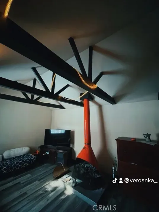 Interior features include new vinyl plank flooring throughout, smooth-finished walls, 4-inch maple baseboards, custom door trim, and modern 5-panel interior doors. The spacious living area offers two wood-burning fireplaces and a mini-split heat pump system in the kitchen/living area for efficient heating and cooling. All new LED recessed lighting enhances the bright, contemporary feel.