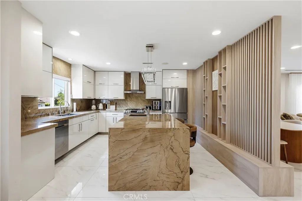 An exquisitely upgraded residence that redefines modern living in the heart of Sun Valley. Located on a generous lot, 10101 Lanark Street is an exceptional property that perfectly blends refined comfort, contemporary elegance, and outstanding functionality. This beautifully curated home welcomes you with a bright, open-concept layout that is bathed in natural light, creating a warm yet sophisticated ambiance throughout. At its core lies a stunning designer kitchen that stands as a true centerpiece. Featuring sleek countertops, high-quality appliances, abundant custom cabinetry, and an oversized island, this kitchen is not only visually striking but also functional—ideal for both everyday living and entertaining guests. The