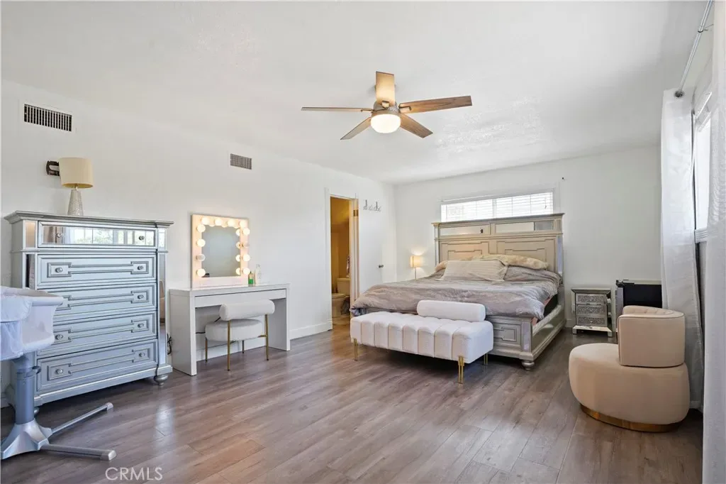 Welcome to this immaculate two-story home, nestled in one of Sun Valley’s most sought-after neighborhoods. The property boasts impressive curb appeal with wrought iron and block pillar fencing, lush landscaping, tall palm trees, and a charming paver courtyard. Inside to discover a spacious and flowing 1,961 square foot floor plan, designed for both comfort and style. The home is in “Move-In Condition” with elegant crown molding, a newer paint scheme, and a tasteful combination of laminate and tile flooring throughout. The bright and airy living room features recessed lighting, a custom-tiled fireplace with a raised hearth, and natural light streaming through the sliding glass patio doors. The gourmet kitchen is a chef’s dream, offering ample cabinet space, granite countertops with a beautiful backsplash, a dual-basin stainless steel sink, and built-in stainless-steel appliances. The adjacent dining area, with direct access to the patio, is perfect for family meals or entertaining guests. This home features 4 spacious bedrooms, including two grand suites. The large downstairs suite includes a lighted ceiling fan, two mirrored closets, a cozy sitting area, and direct access to the backyard patio. The second-floor suite is equally inviting, with a lighted ceiling fan and a private, well-appointed bathroom. The home also offers one secondary bedroom with its own bathroom, making a total of 3 bathrooms in the home. Energy-efficient dual-pane windows help maintain a quiet, peaceful atmosphere while keeping utility costs low. Central air and heat ensure year-round comfort. Step outside to the expansive backyard, perfect for entertaining with a gigantic, covered patio and a sparkling, fenced pool. A large storage shed is available for all your supplies, making it a functional space as well as a beautiful one. Parking is a breeze with an oversized concrete driveway and a 2-car direct-access garage, all secured behind a rolling security gate. This gorgeous home sits on an 8,552 square foot lot and is conveniently located near top-rated schools and the 5 Freeway, offering the perfect blend of comfort, style, and convenience. Don’t miss the opportunity to make this stunning home yours!