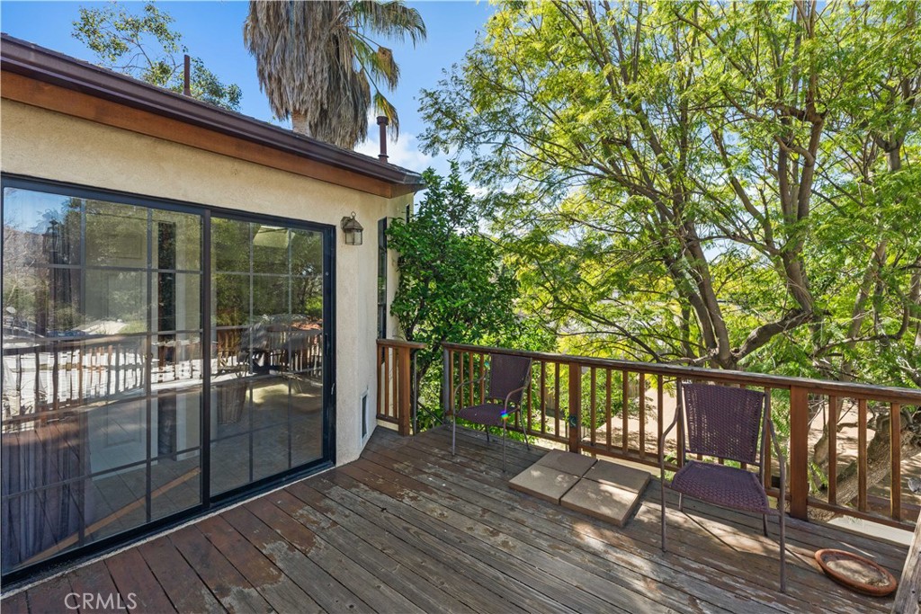 Incredible opportunity to own this unique 4-bedroom plus loft home with 4.5 bathrooms and 2,571 sq ft of beautiful custom living space in a high desirable pocket of Sunland. The versatile floor plan offers exceptional flexibility. The first floor features a private suite complete with its own living room, kitchen, bedroom, and full bathroom. This space can be closed off and includes a separate exterior entrance, making it ideal for extended family, guests, or rental potential. The first floor also includes another bedroom with its own ensuite bathroom. Upstairs you will find a spacious living room with a custom fireplace and new carpet, a beautiful kitchen, dining room, and two private decks perfect for relaxing or entertaining. Enjoy beautiful mountainous views from the living room and kitchen. The primary bedroom is also located on this level and includes a beautiful spa-like bathroom. An additional spacious secondary bedroom with its own ensuite bathroom completes the floor. Stairs from the living room lead to a large loft, ideal for a home office, exercise space, or family room. The exterior features a beautiful yard with lush trees, where tranquil peacocks roam the neighborhood. The property also offers a driveway leading to a two-car garage with a spacious adjoining workshop. The backyard includes citrus trees, privacy, and plenty of space for outdoor enjoyment. Hurry before its sold!