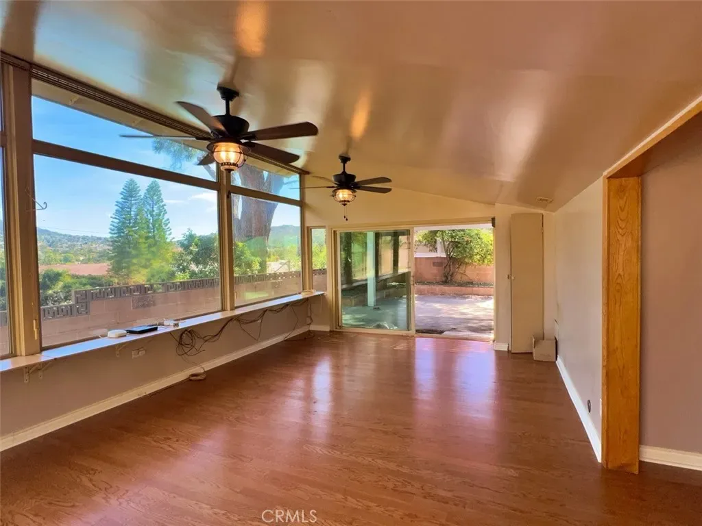 The true showpiece is the expansive sunroom, where walls of panoramic windows frame the Verdugo Mountains beneath a vaulted ceiling with dual ceiling fans. Filled with natural light and finished with hardwood floors, this room is perfect for enjoying the surrounding scenery year-round.