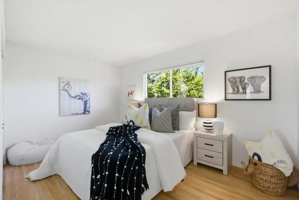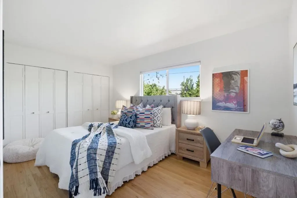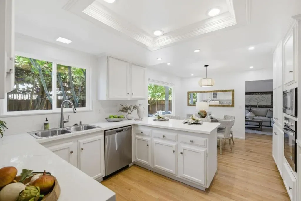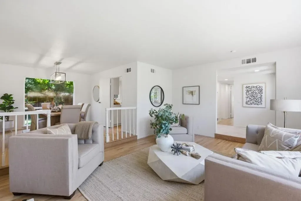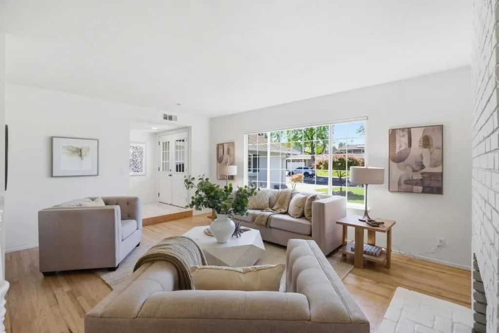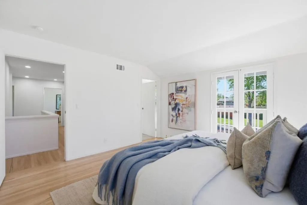 Nestled in the highly sought-after Old Orchard neighborhood just moments from Las Palmas Park, this tastefully updated traditional-style residence offers exceptional space, style, and versatility. The expansive 6BD/3BA home has been thoughtfully curated with new interior/exterior paint, refinished hardwood floors, professionally designed landscaping & updated kitchen & bathrooms. The lower level is ideal for daily living & entertaining, featuring an updated kitchen with new stainless appliances, quartz counter tops, subway tile backsplash and a charming breakfast nook & adjoining dining room. The spacious living room provides an inviting gathering space with a cozy fireplace, while the separate family room offers versatility as a media room or office/den. A bedroom & full bathroom complete the lower level. Upstairs, 5 generously sized bedrooms offer ample space for family, guests or a home office complemented by an updated hall bath. The primary suite is a tranquil retreat with an updated ensuite bath & French doors opening to an expansive balcony overlooking the lush front yard. A private rear yard with mature landscaping & a brick patio is perfect for entertaining or relaxing. Located in the desirable Sunnyvale School District near shopping, tech campuses & transportation hubs.