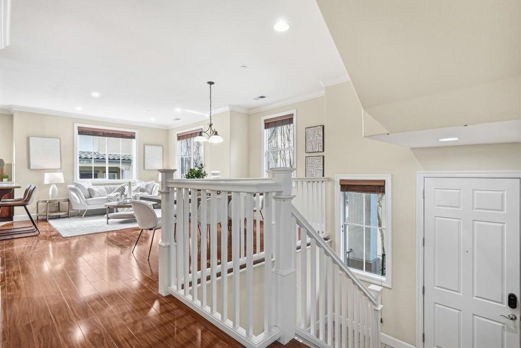 North Facing. Welcome to this end unit townhome in the highly sought-after City Park community within Sunnyvale. This elegant 4-bedroom, 3.5-bathroom townhome offers 1,725 square feet of living space. Bright and airy, the home benefits from abundant natural light through the extra end unit windows.The main level features an open living room, and family/dining room combo, The kitchen boasts top-of-the-line cabinetry, stainless steel appliances and granite counters, a breakfast island, perfect for entertaining. The private downstairs junior suite is perfect for in-laws or visitors or even a study. The upstairs, primary bedroom features a walk-in closet, tub, shower, and dual sinks. Two additional spacious bedrooms and a hallway bathroom complete the upper level. Hoa covers garbage fee. Close proximity within close proximity to Seven Seas Park, downtown, shops, commuting routes and top Silicon Valley employers.